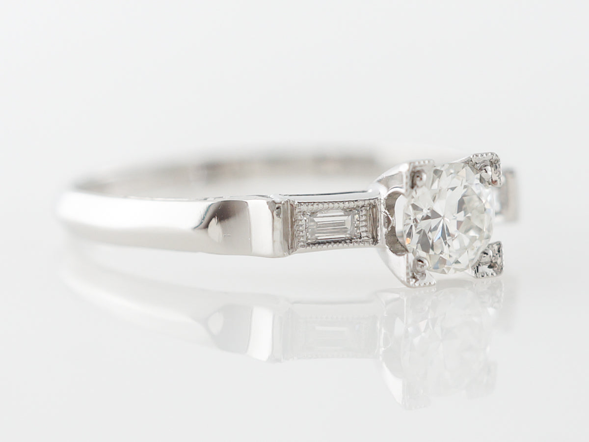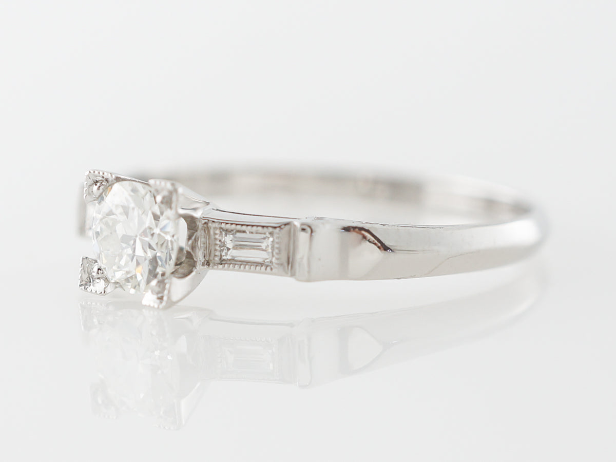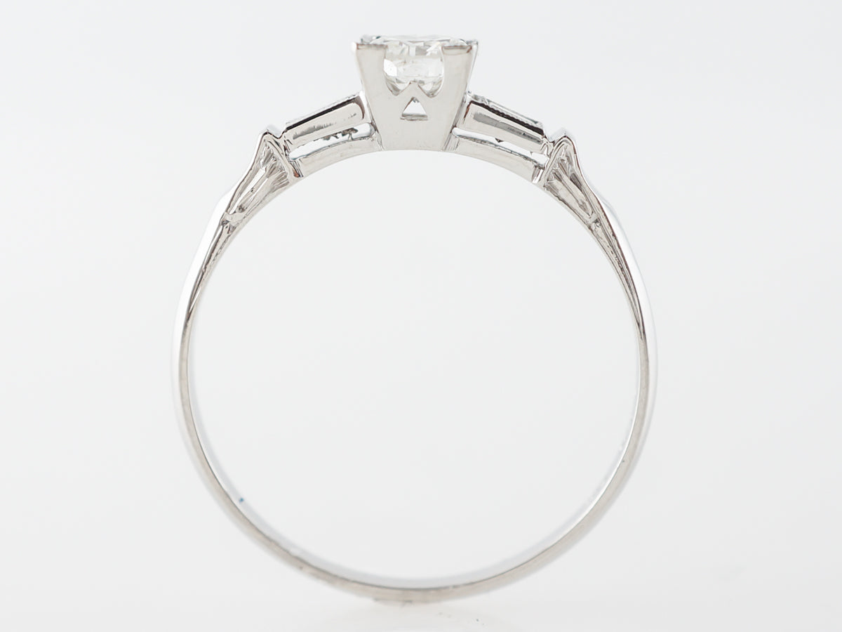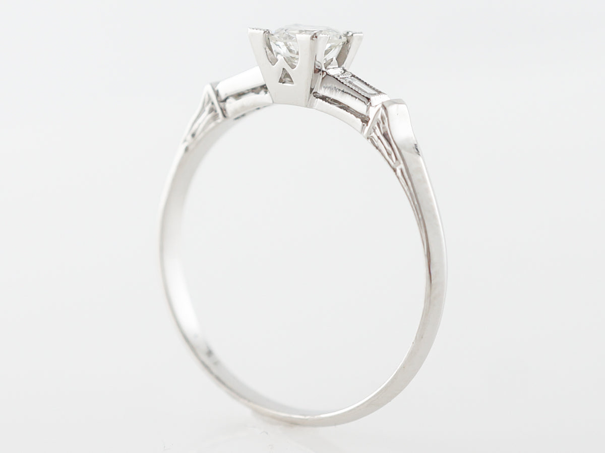 Solitaire Engagement Ring w/ Baguette Cut Diamonds Vintage Art Deco