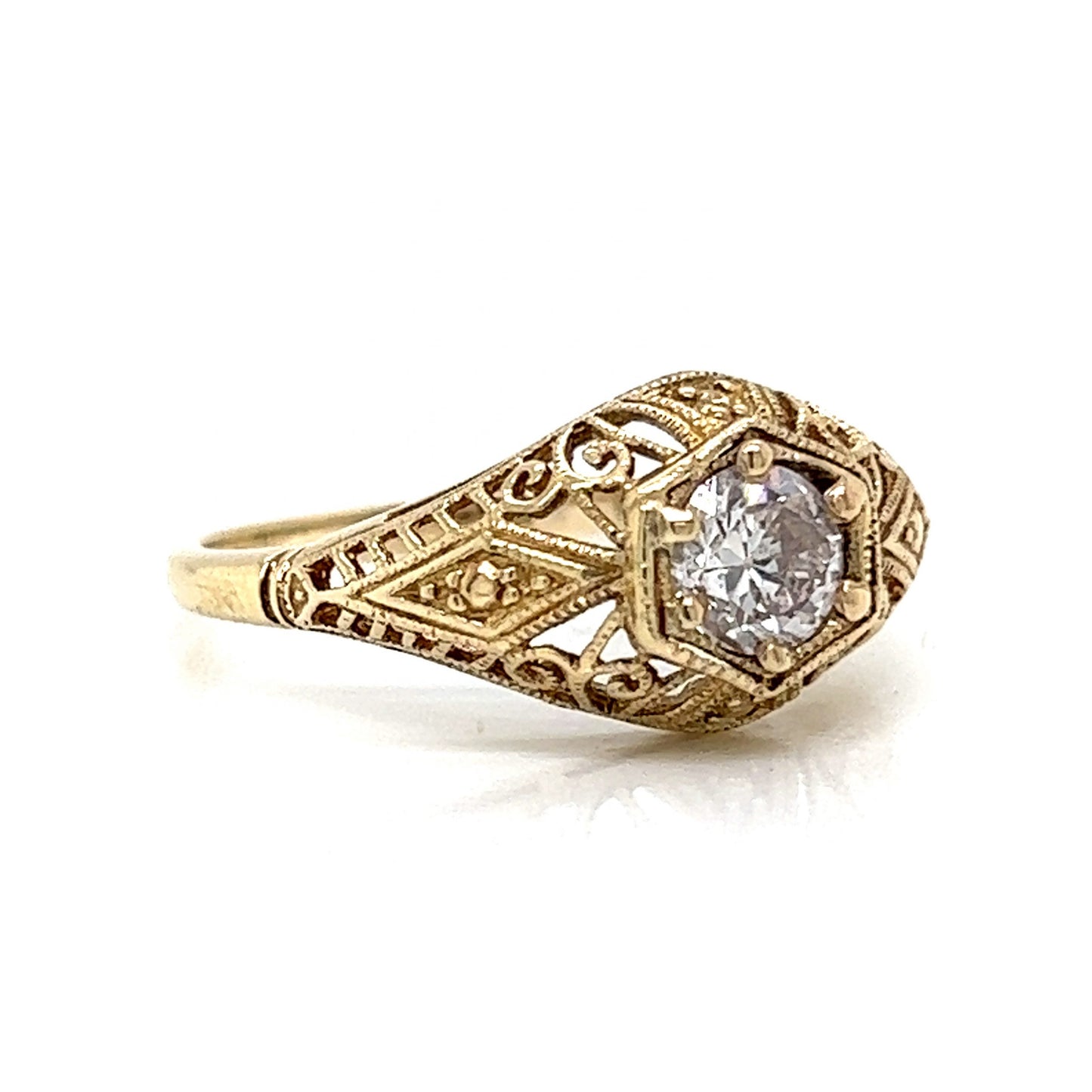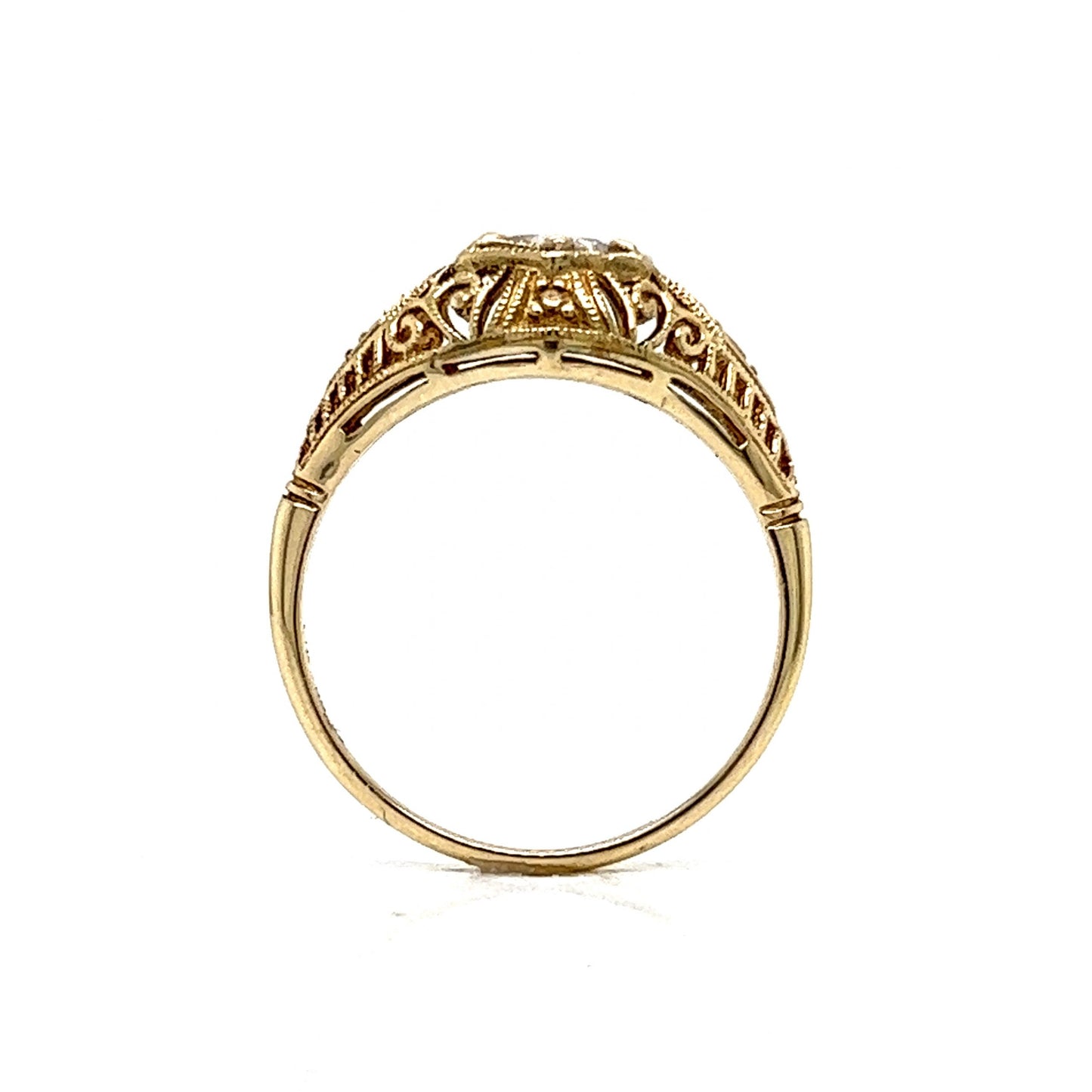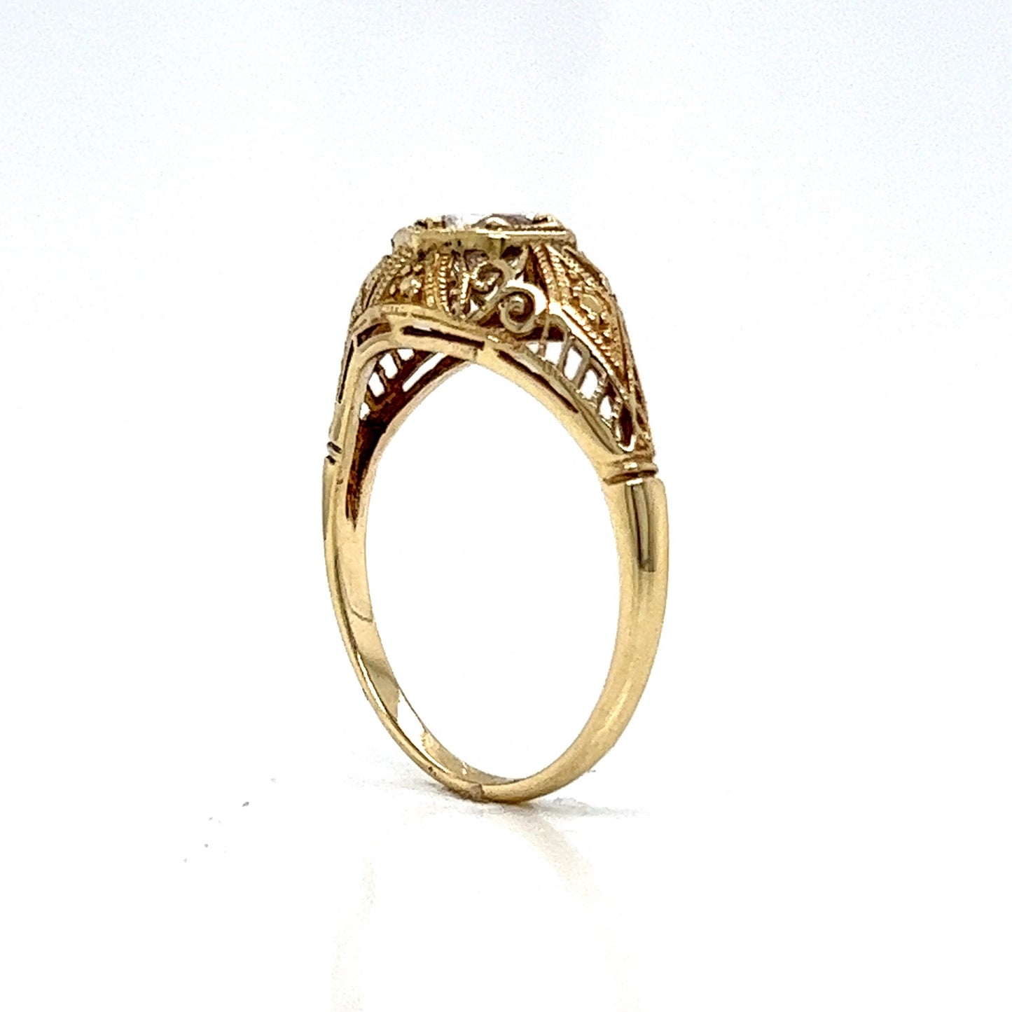 Solitaire Filigree Art Deco Engagement Ring in 14k Yellow Gold