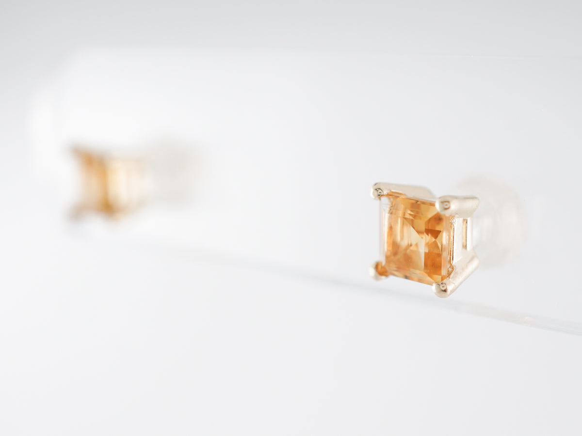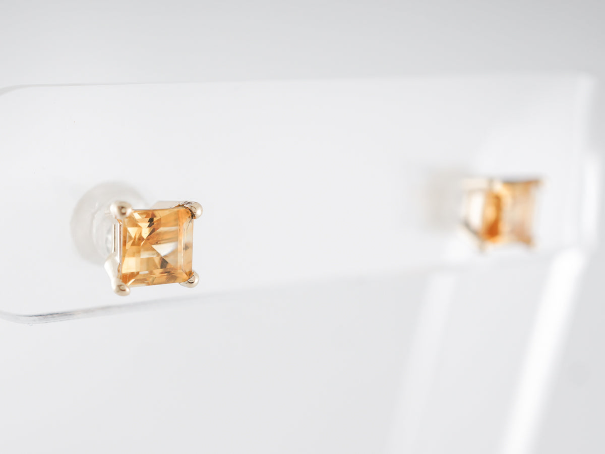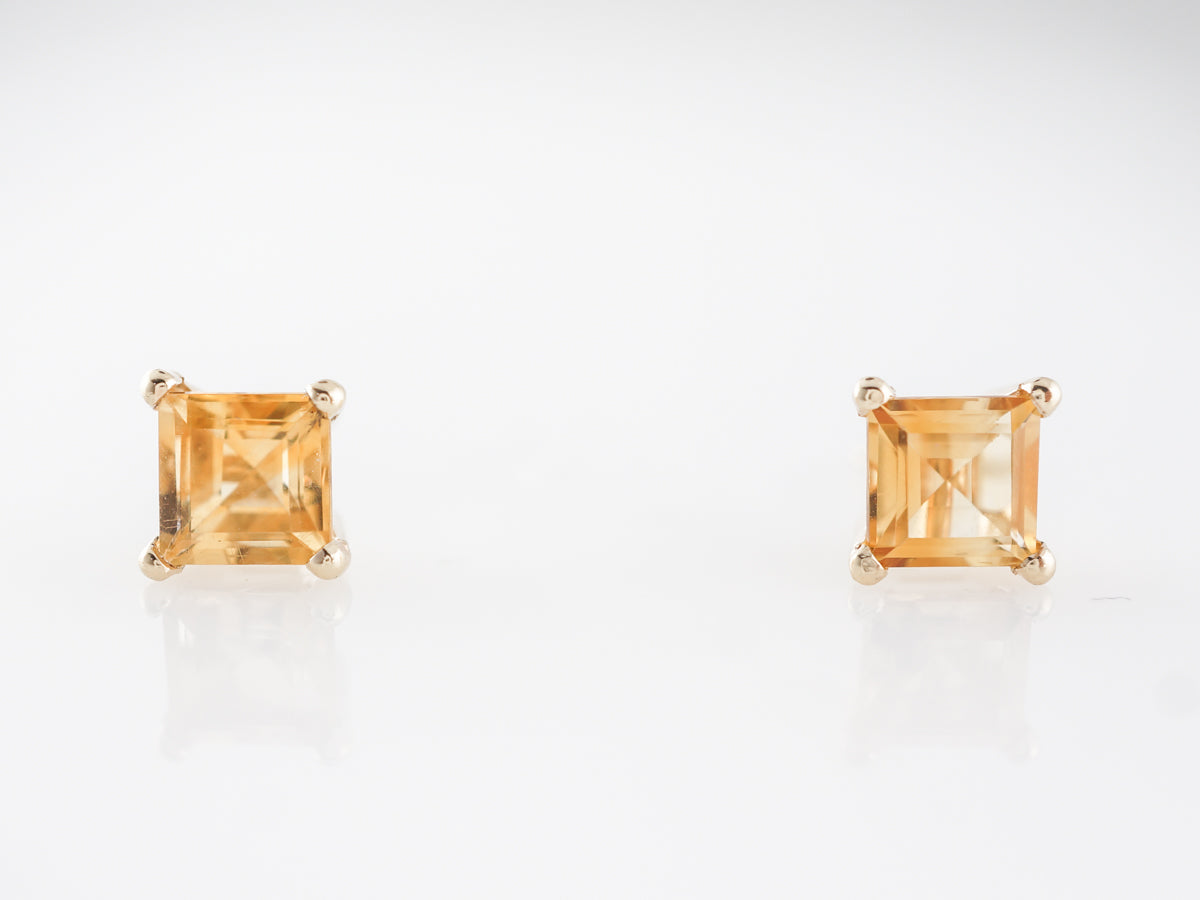 Square Cut Citrine Earrings in 14k Yellow Gold