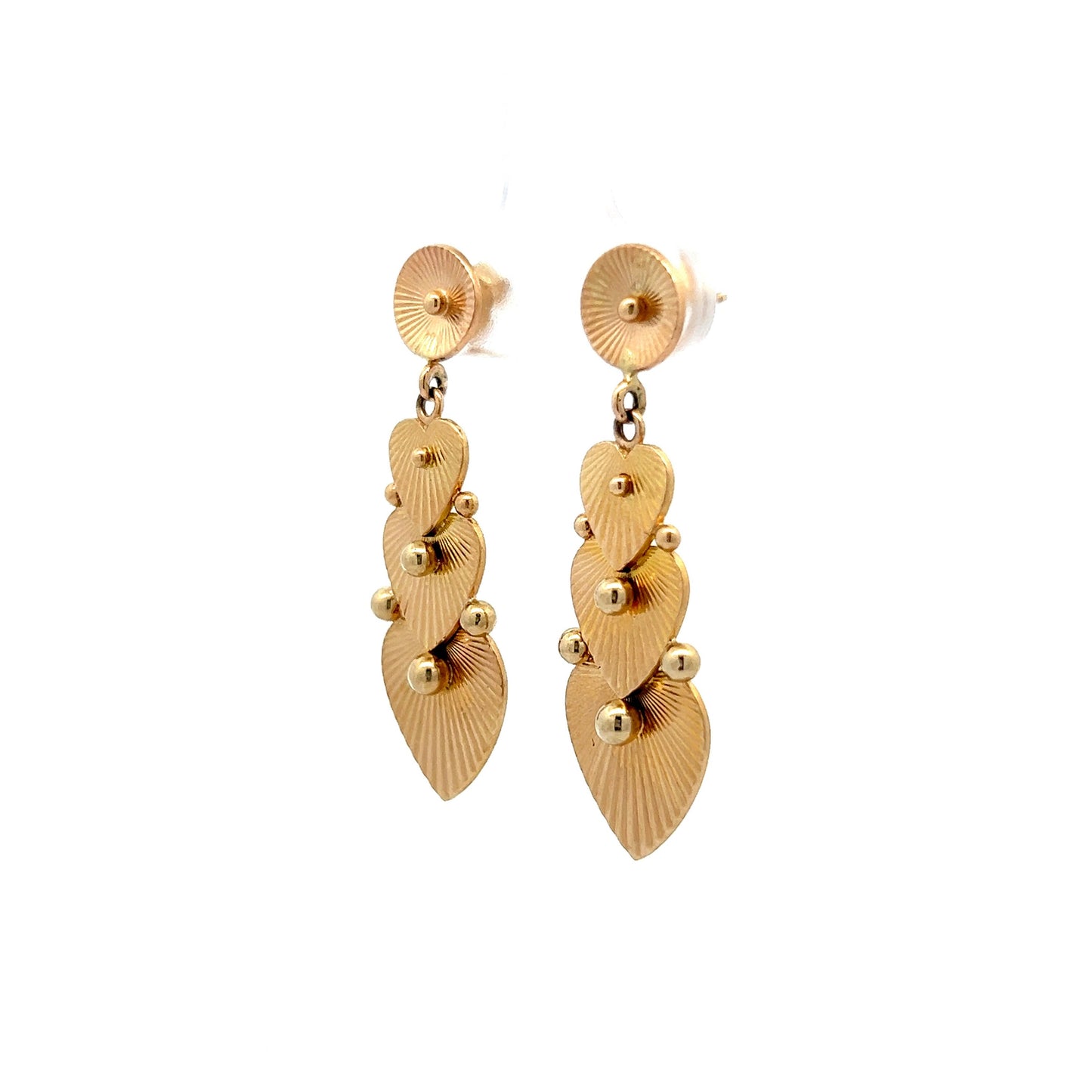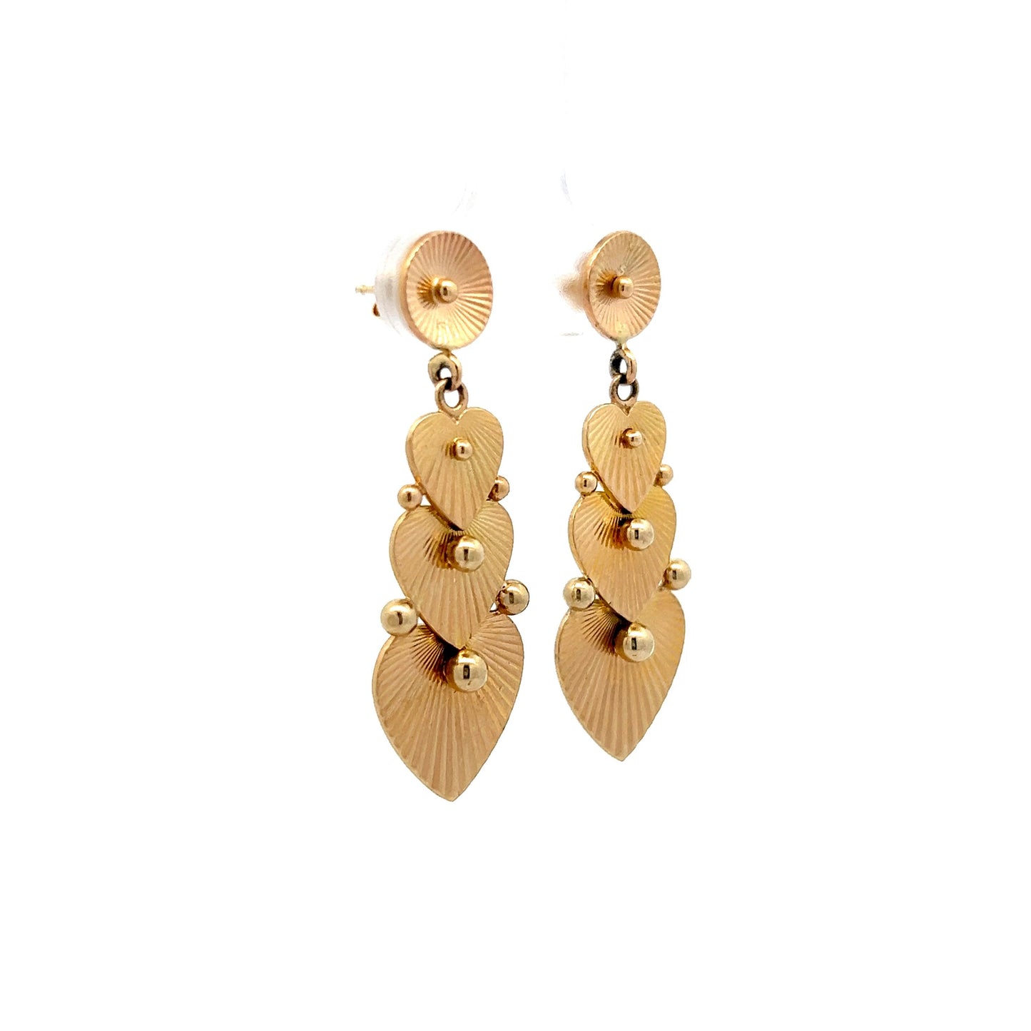 Stacked Heart Drop Earrings in 14k Yellow Gold