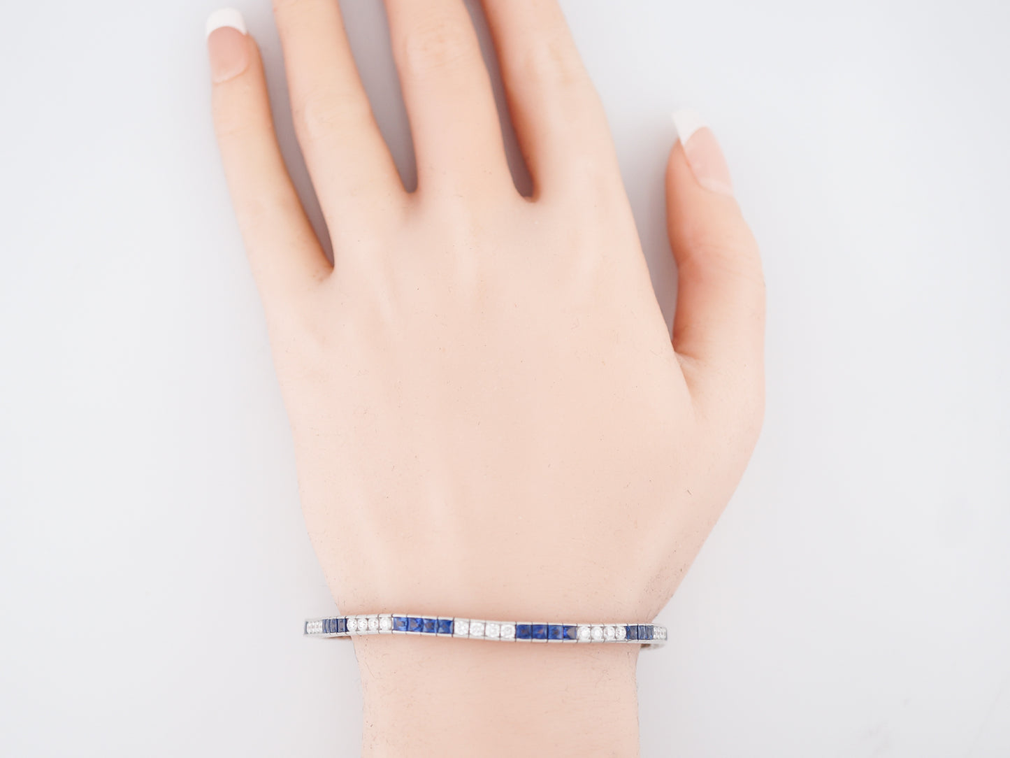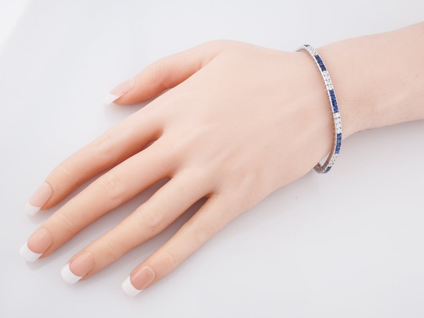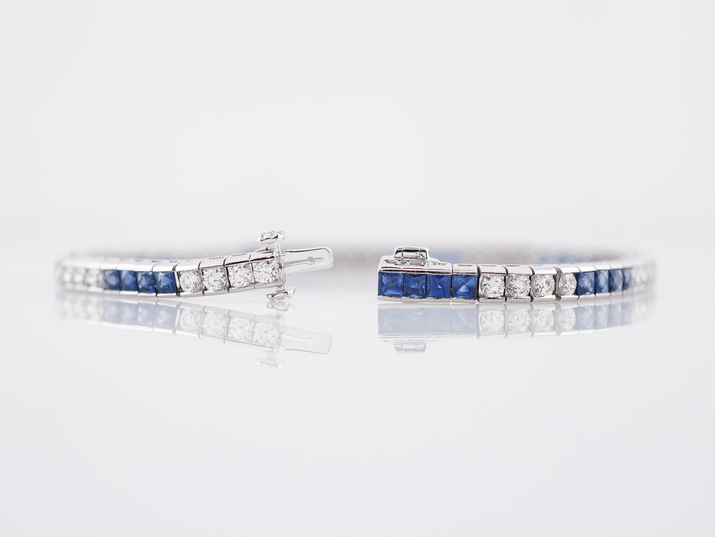 Straight Line Bracelet Modern 1.80 Round Brilliant Cut Diamonds & 4.06 French Cut Sapphires in Platinum