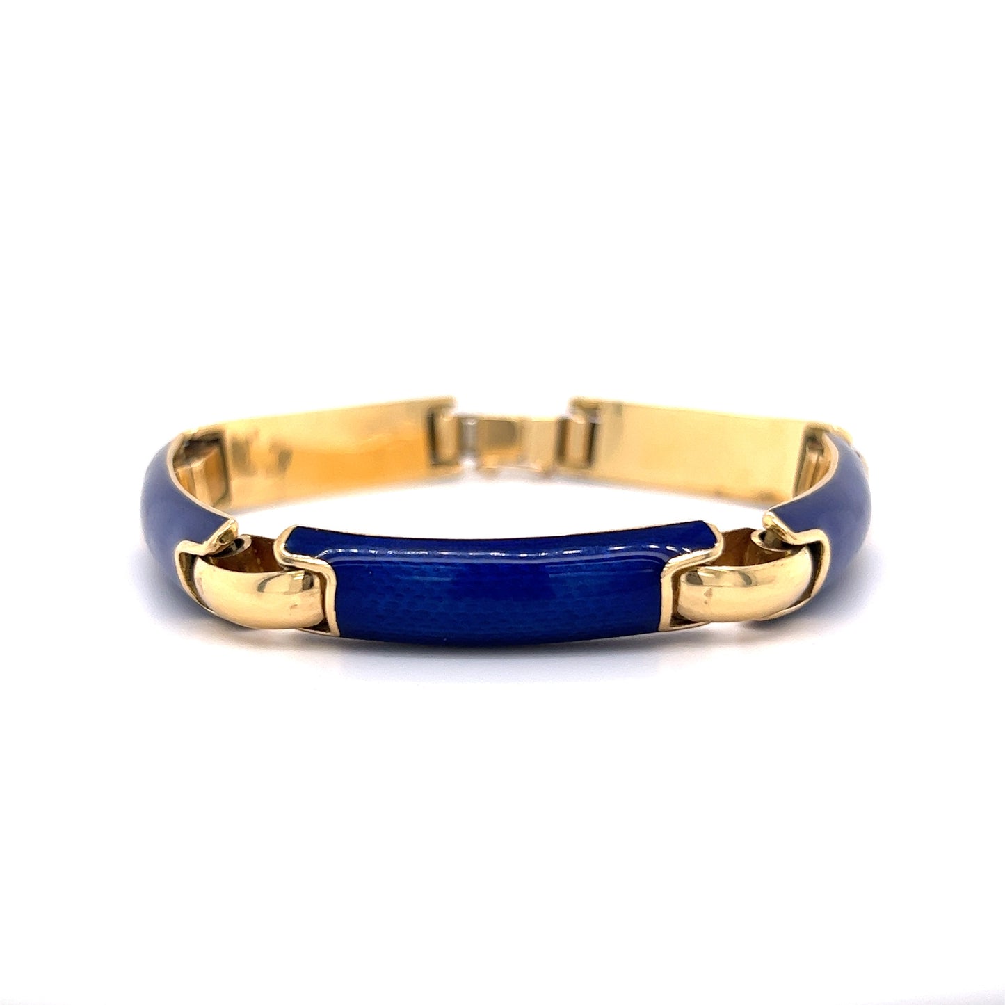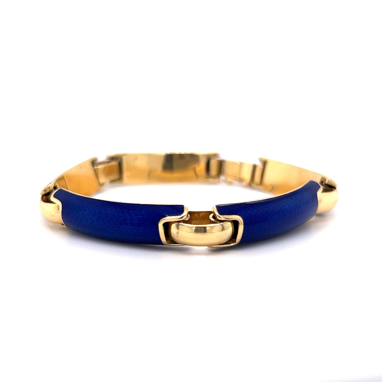 Blue Enamel Link Bracelet in 18k Yellow Gold