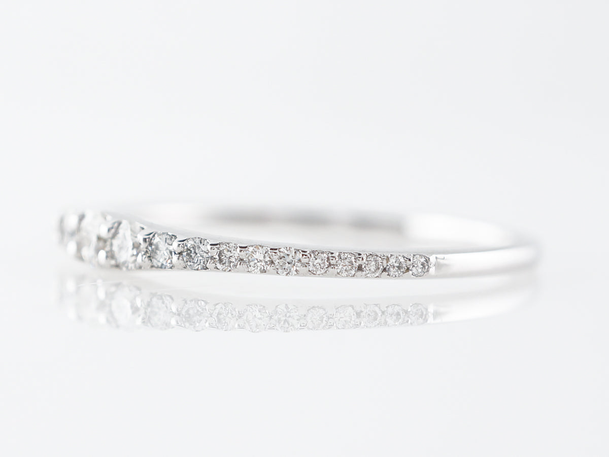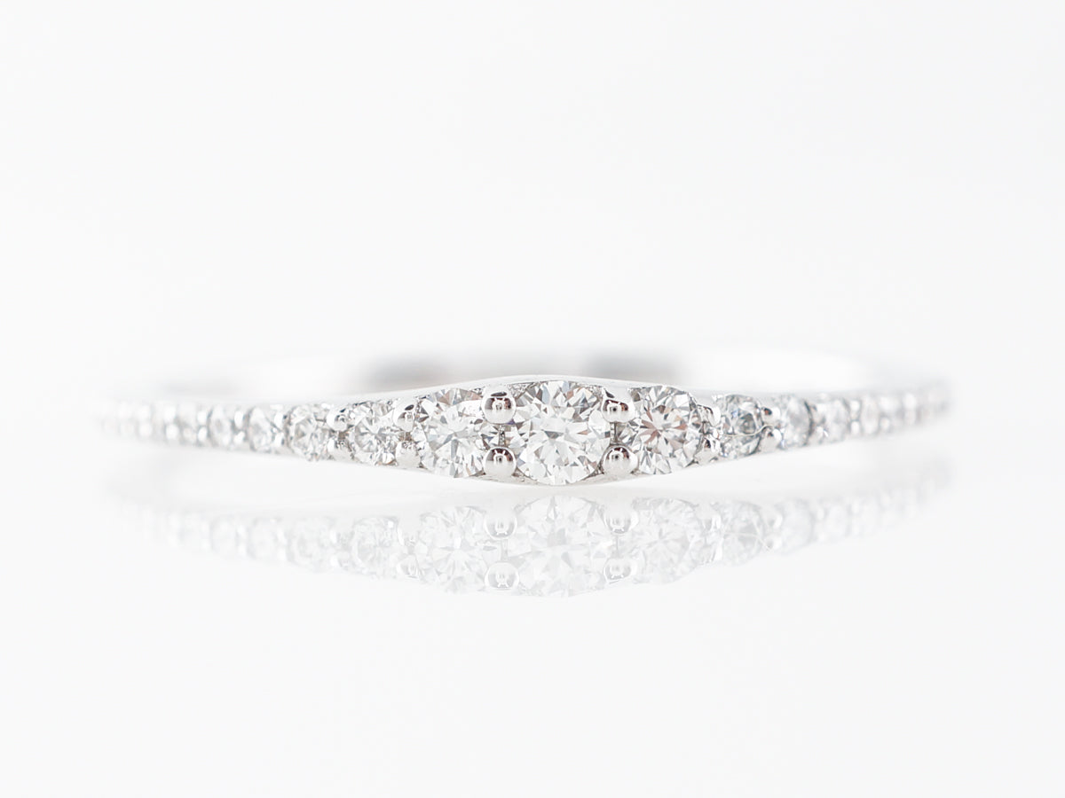 Tapered Round Diamond Right Hand Ring in 18k White Gold. This amazing right hand ring features .18 carats of diamonds and is set in 18 karat white gold. The round brilliant cut diamonds graduate toward the center where the largest stone sits. This creates elegant outlines for the eye to follow and will look great on the right hand or next to an engagement ring.