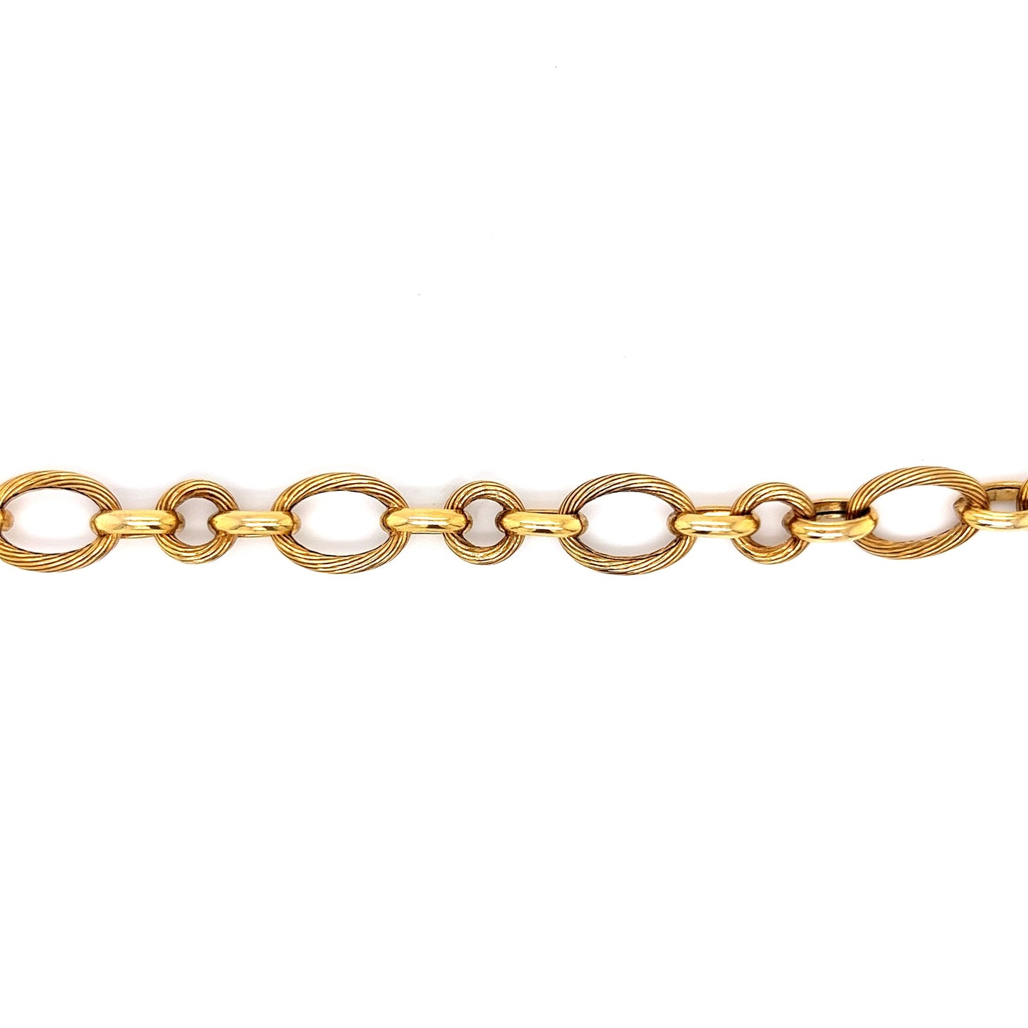 Textured Oval & Round Link Bracelet in 14k Yellow Gold