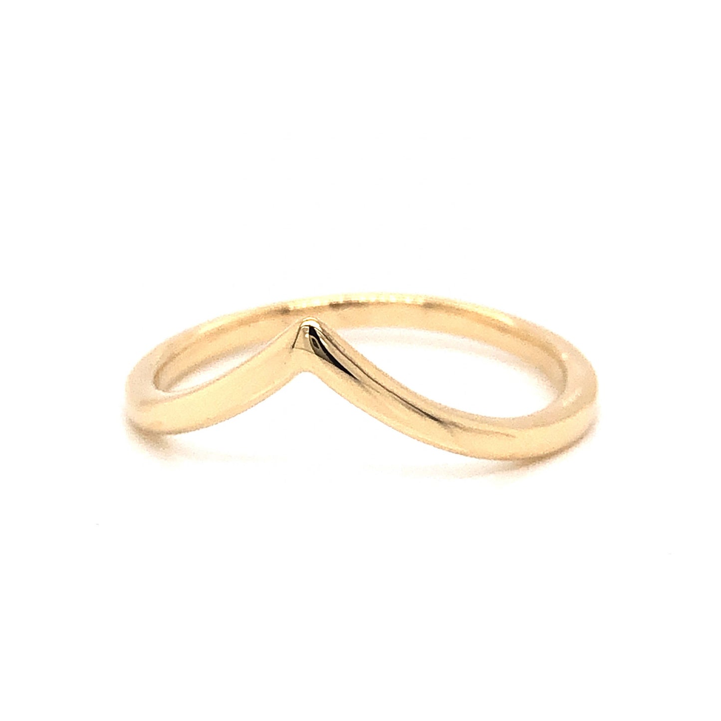 This By Filigree contoured wedding band in 14 karat yellow gold is the perfect match for a solitaire engagement ring! The band is thin with a classic profile and versatile style. Wear this ring next to a yellow gold engagement ring or style on the end of a right hand stack.