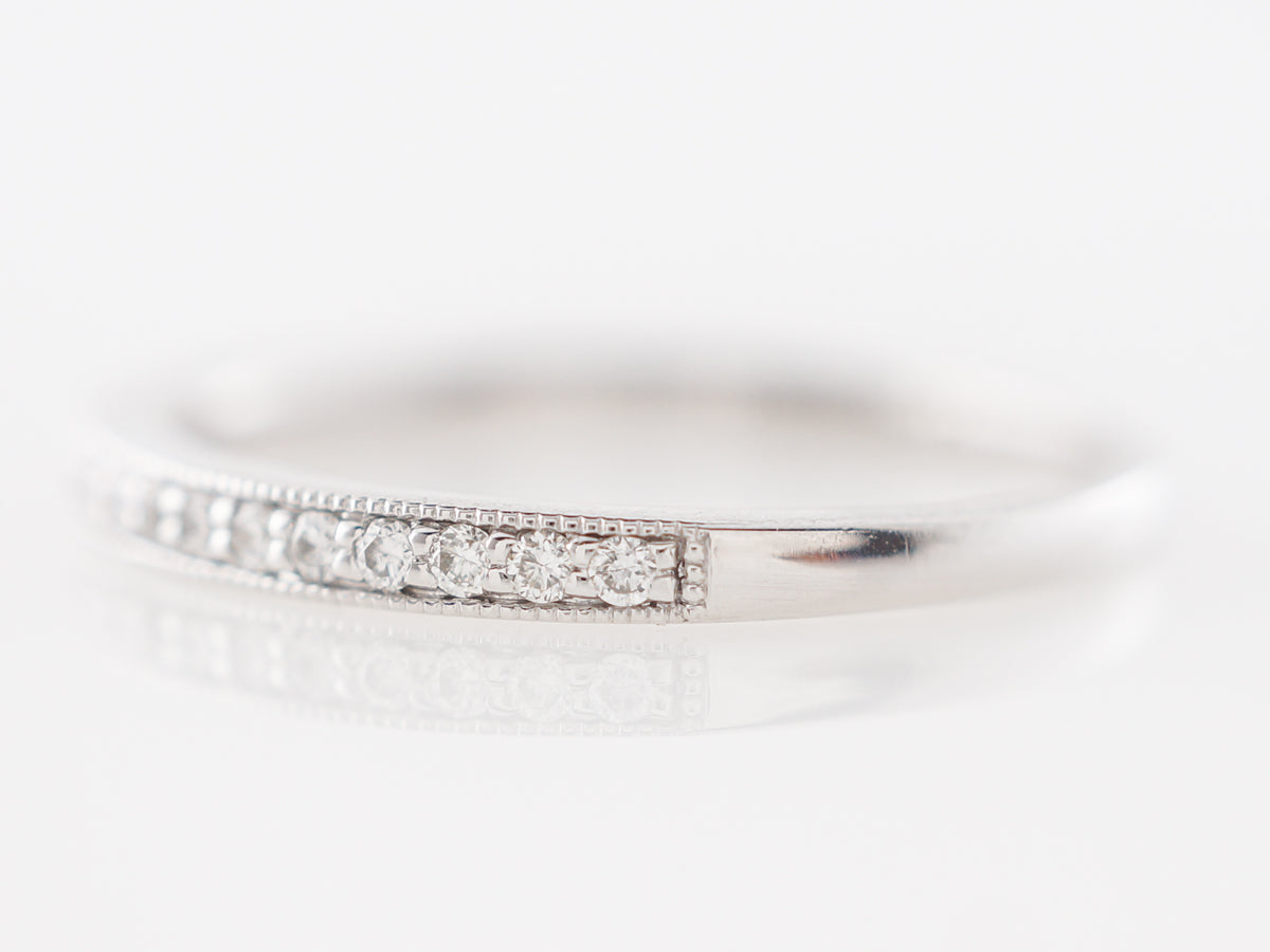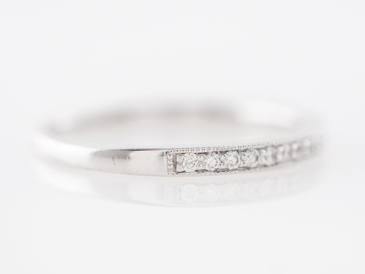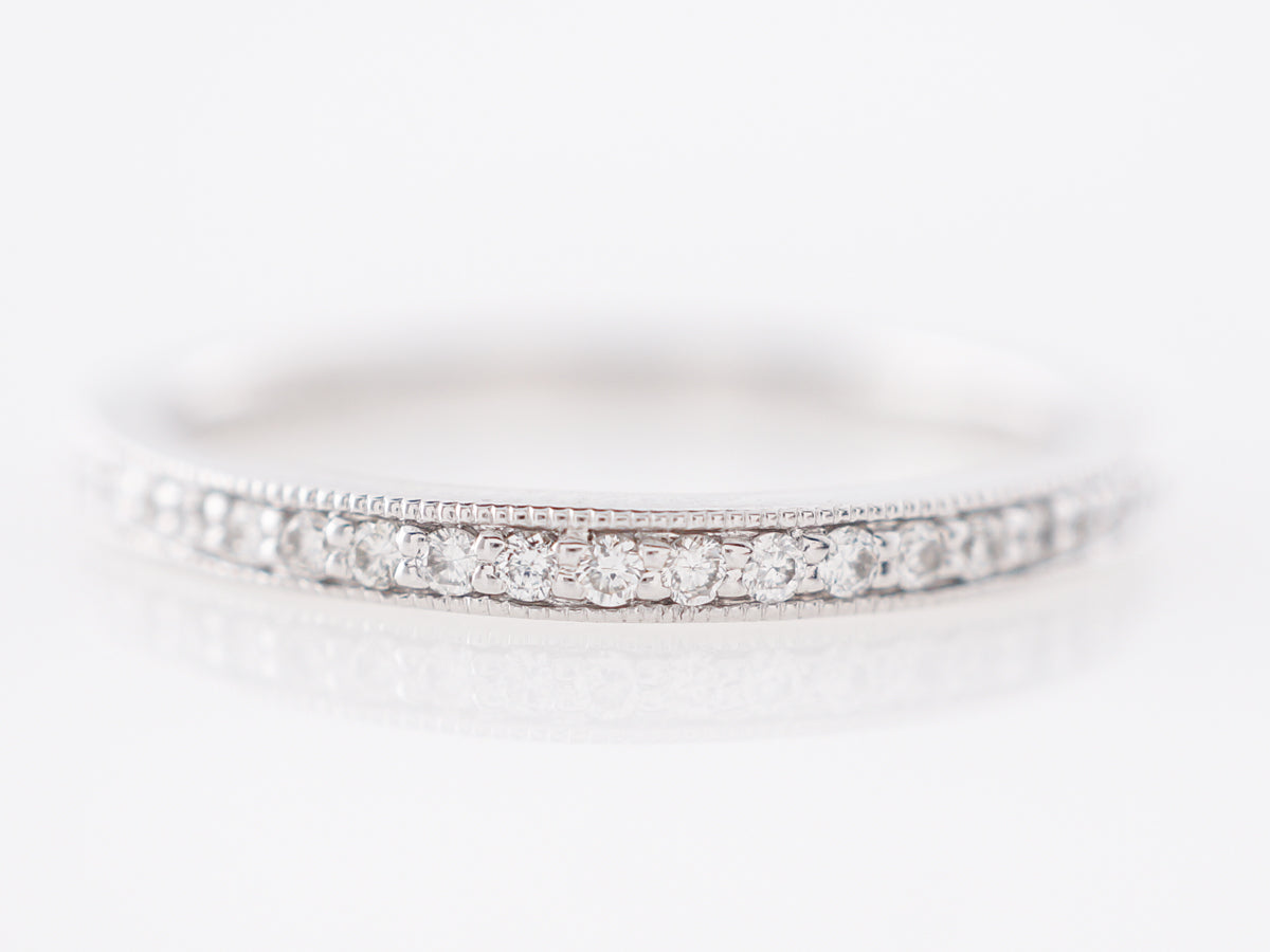 Thin Milgrain Diamond Wedding Band in 14k White Gold.