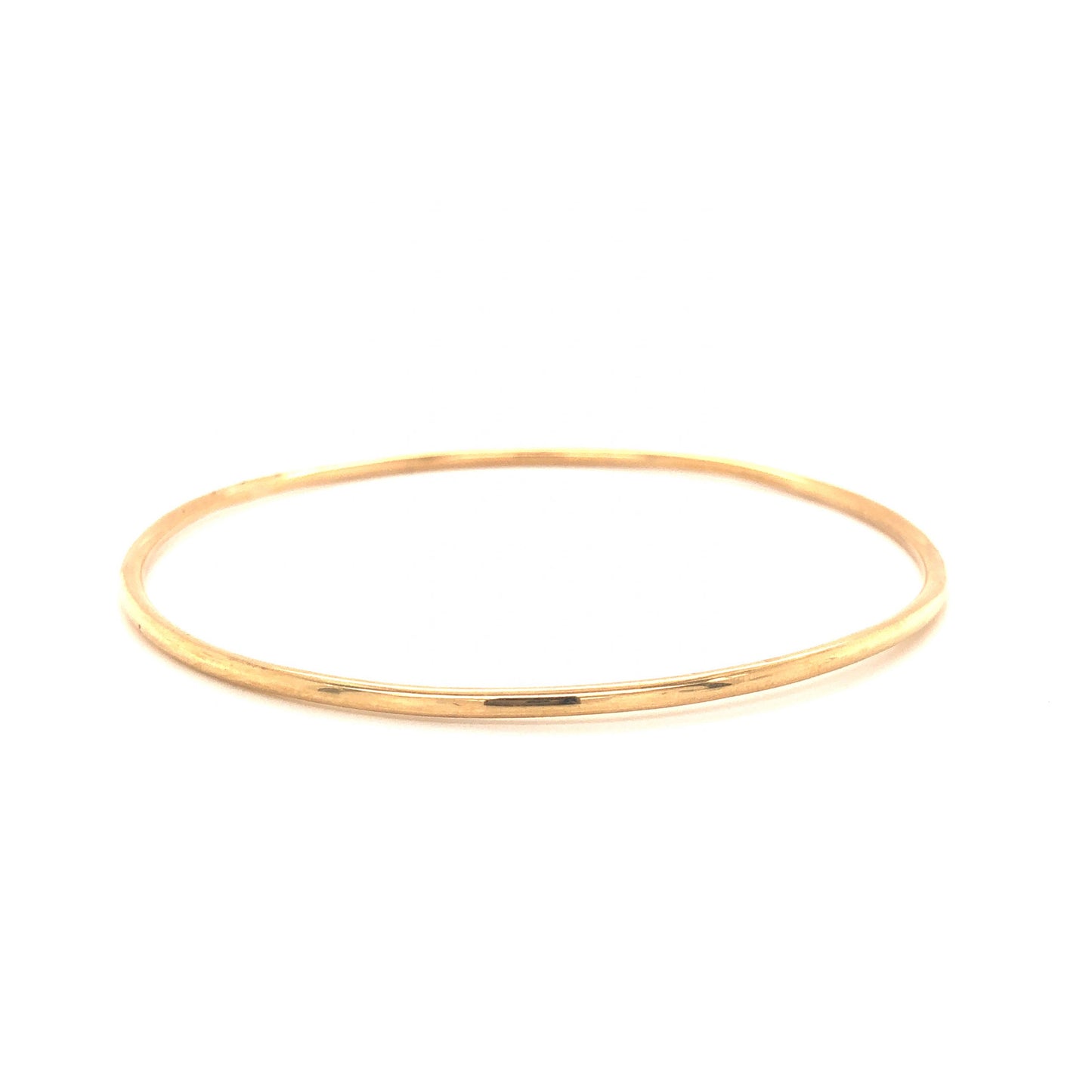 This dainty modern bangle in 14 karat yellow gold is the perfect everyday accessory. Highly polished and weighing 8.6 grams, there’s no wrong way to style this bracelet!