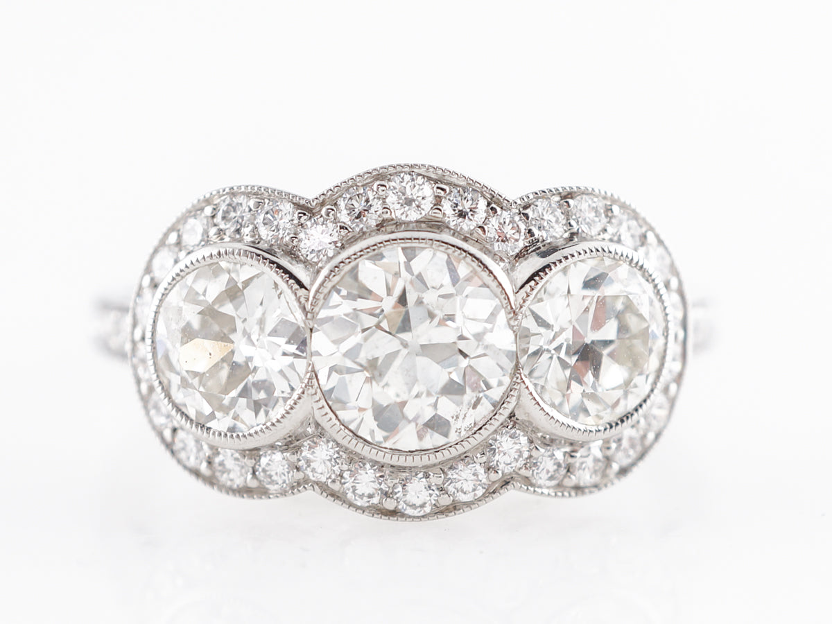 Three Stone Old European Cut Diamond Ring in Platinum