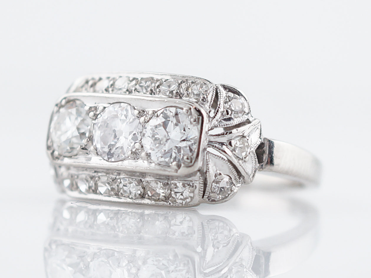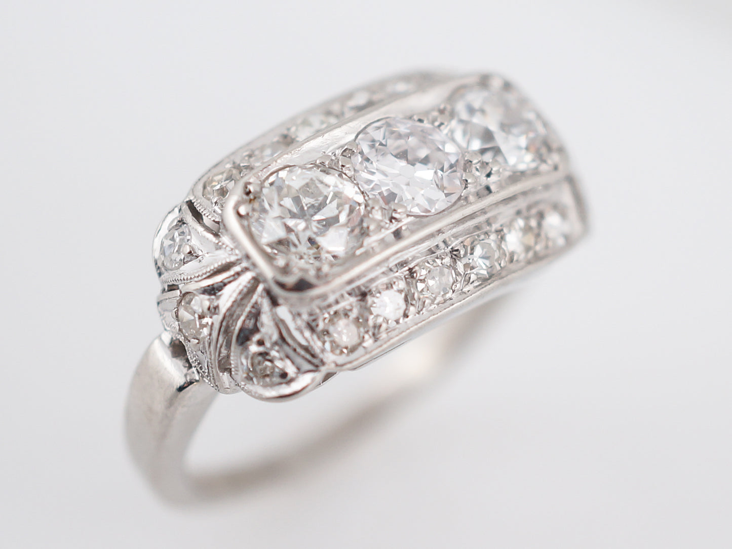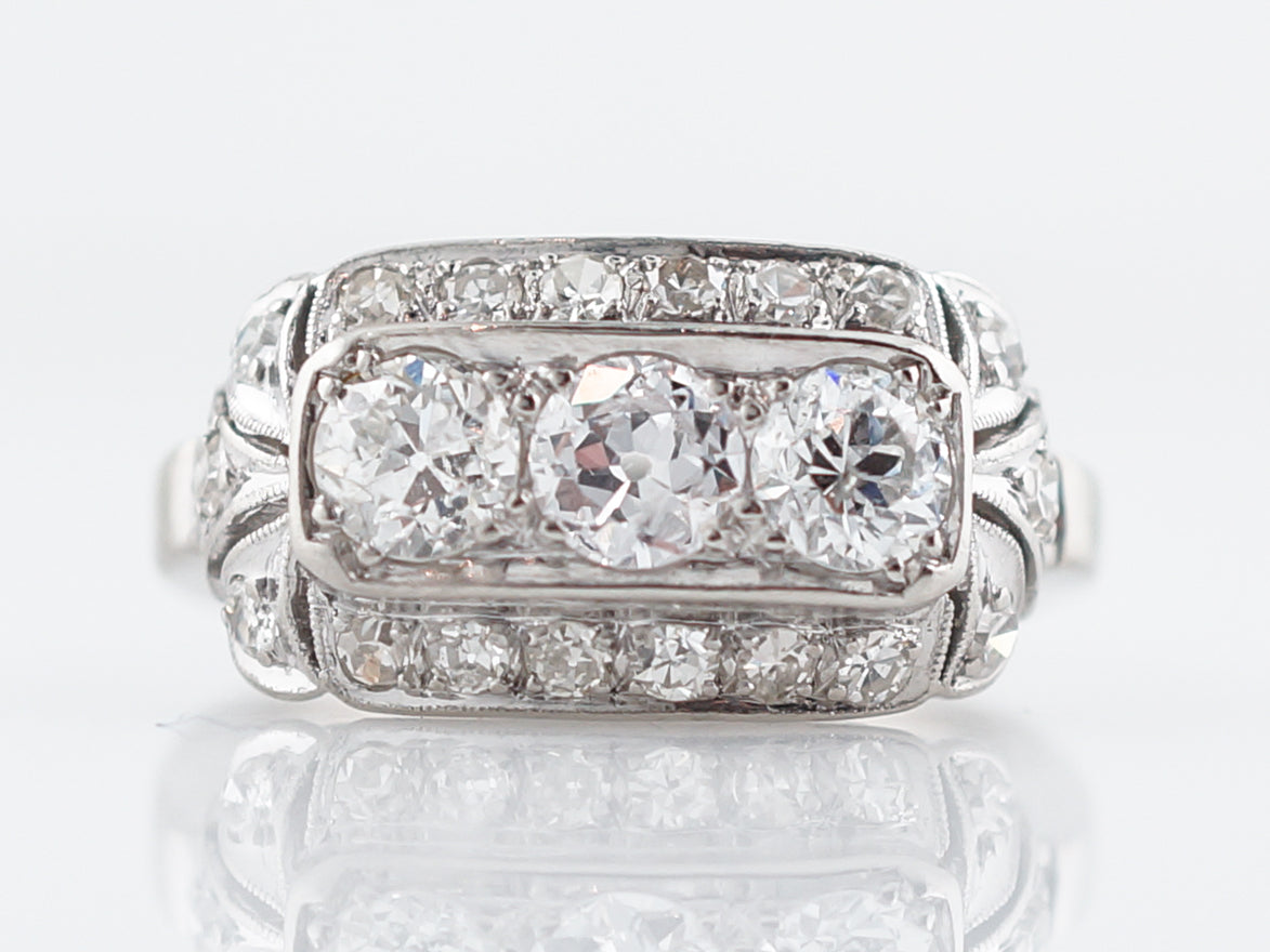 Three Stone Vintage Filigree Diamond Engagement Ring