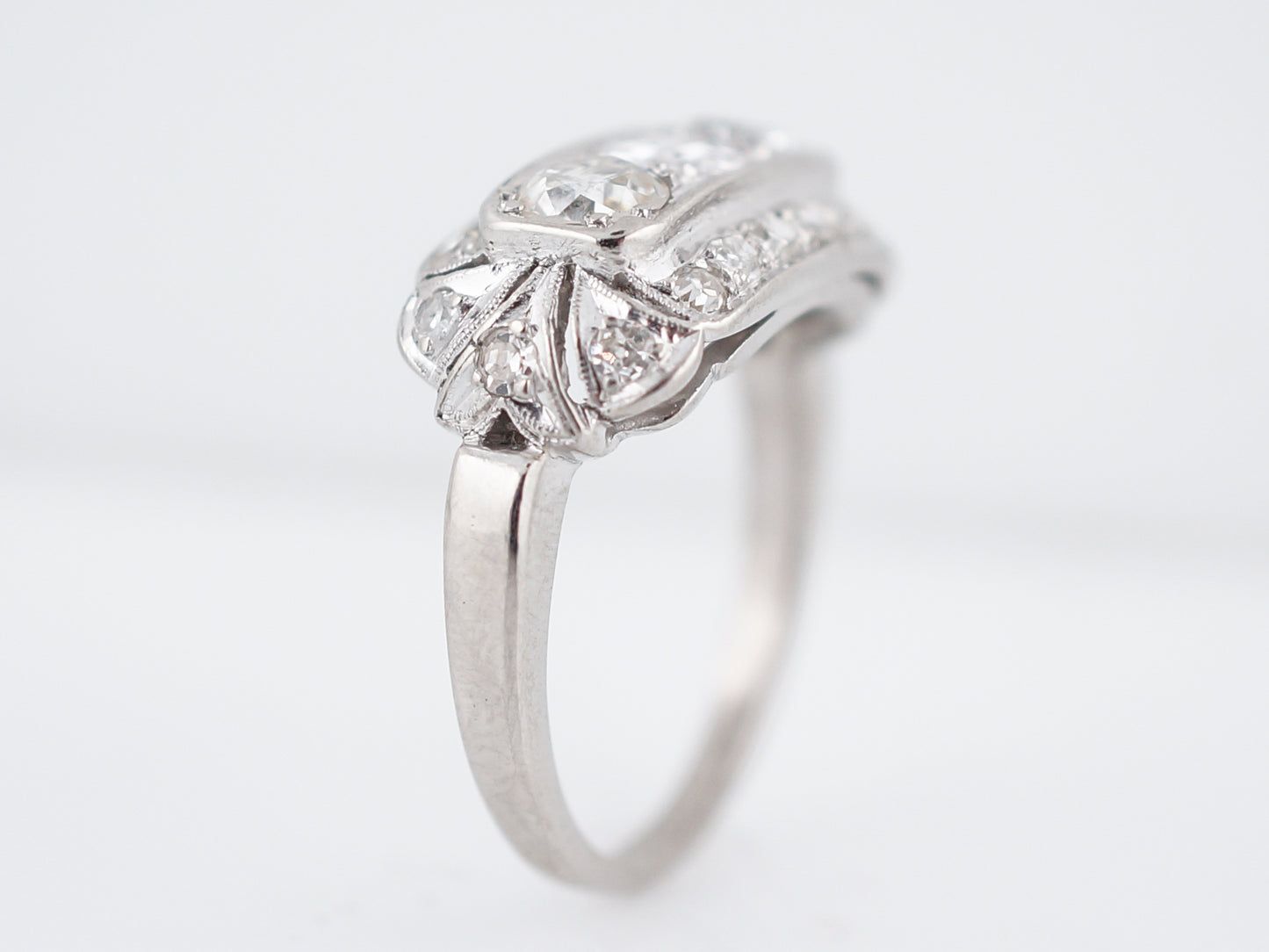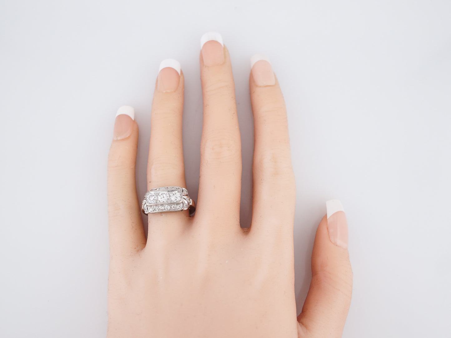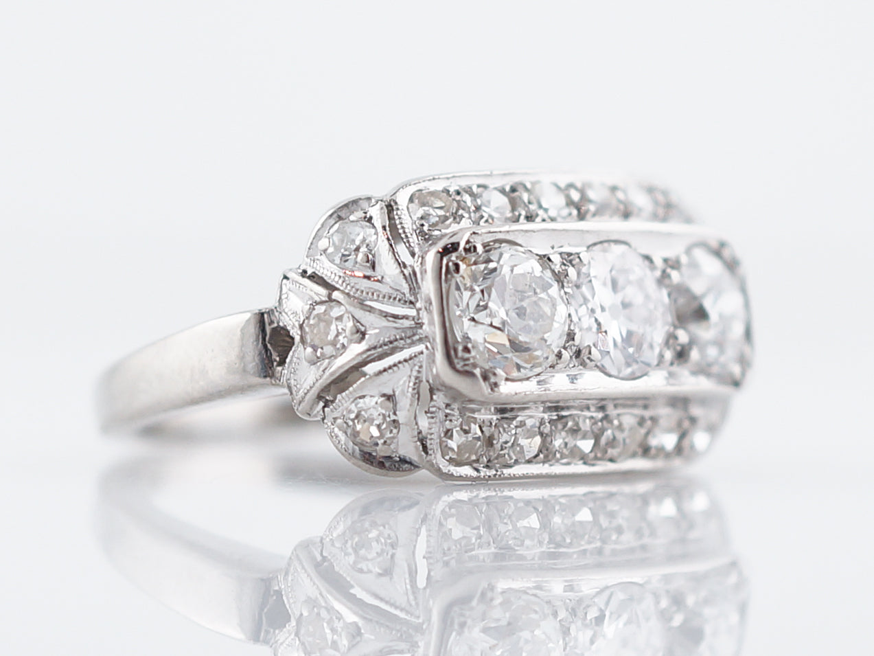 Three Stone Vintage Filigree Diamond Engagement Ring