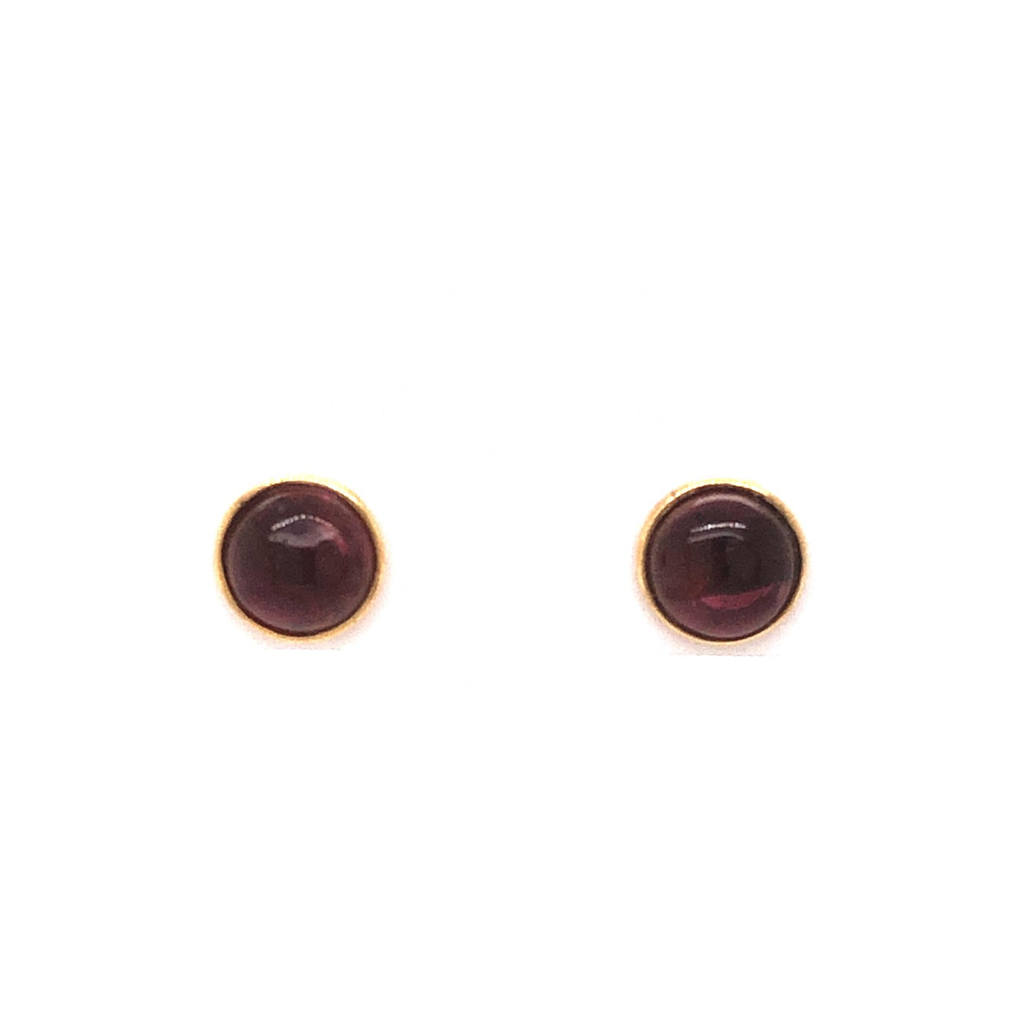 Mid-Century Modern inspired! These sleek modern studs feature two dark pink tourmalines in 18 karat yellow gold. The tourmalines are cabochon cut and feature a deep red-pink hue. The gemstones are bezel set and fitted on classic stud backings. Sweet and stylish. Shop more Earrings.