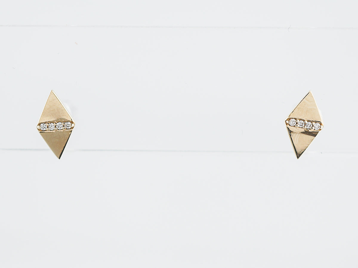Triangle Earrings Modern .03 Round Brilliant Cut Diamonds in 14k Yellow Gold