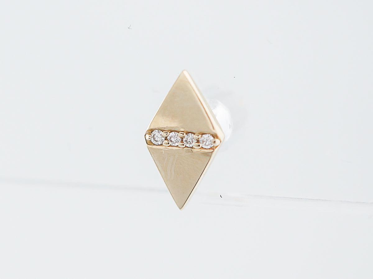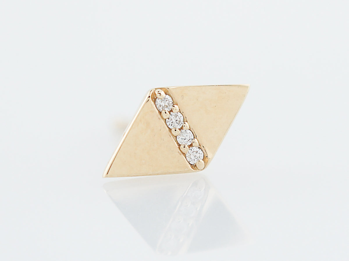 These diamond shaped earrings have geometric and minimalist flair that is right on trend. Each earring has four (4) prong set diamonds that run down the middle of the earring. Cast in 14 karat yellow gold, ask us how we can make these for you in other metal colors!