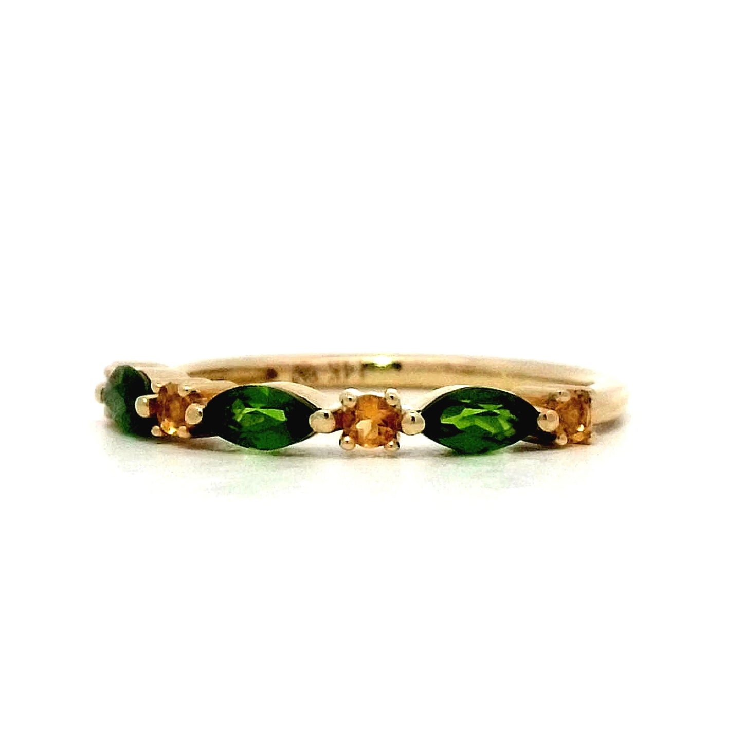 Tsavorite Garnet & Citrine Band in 14k Yellow Gold