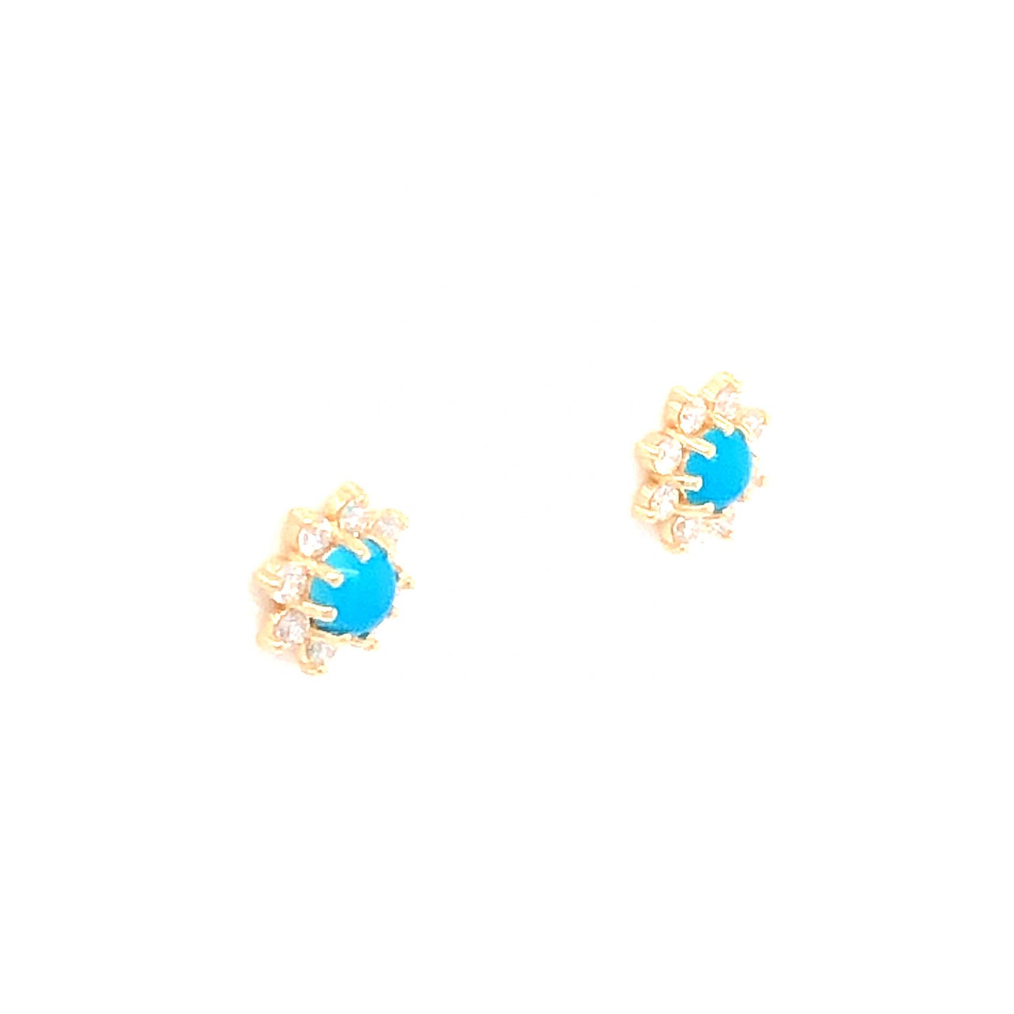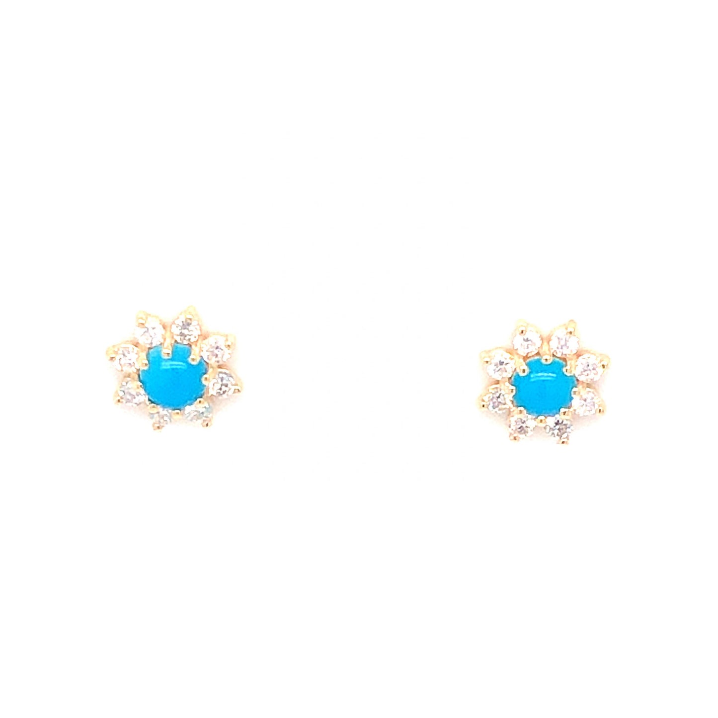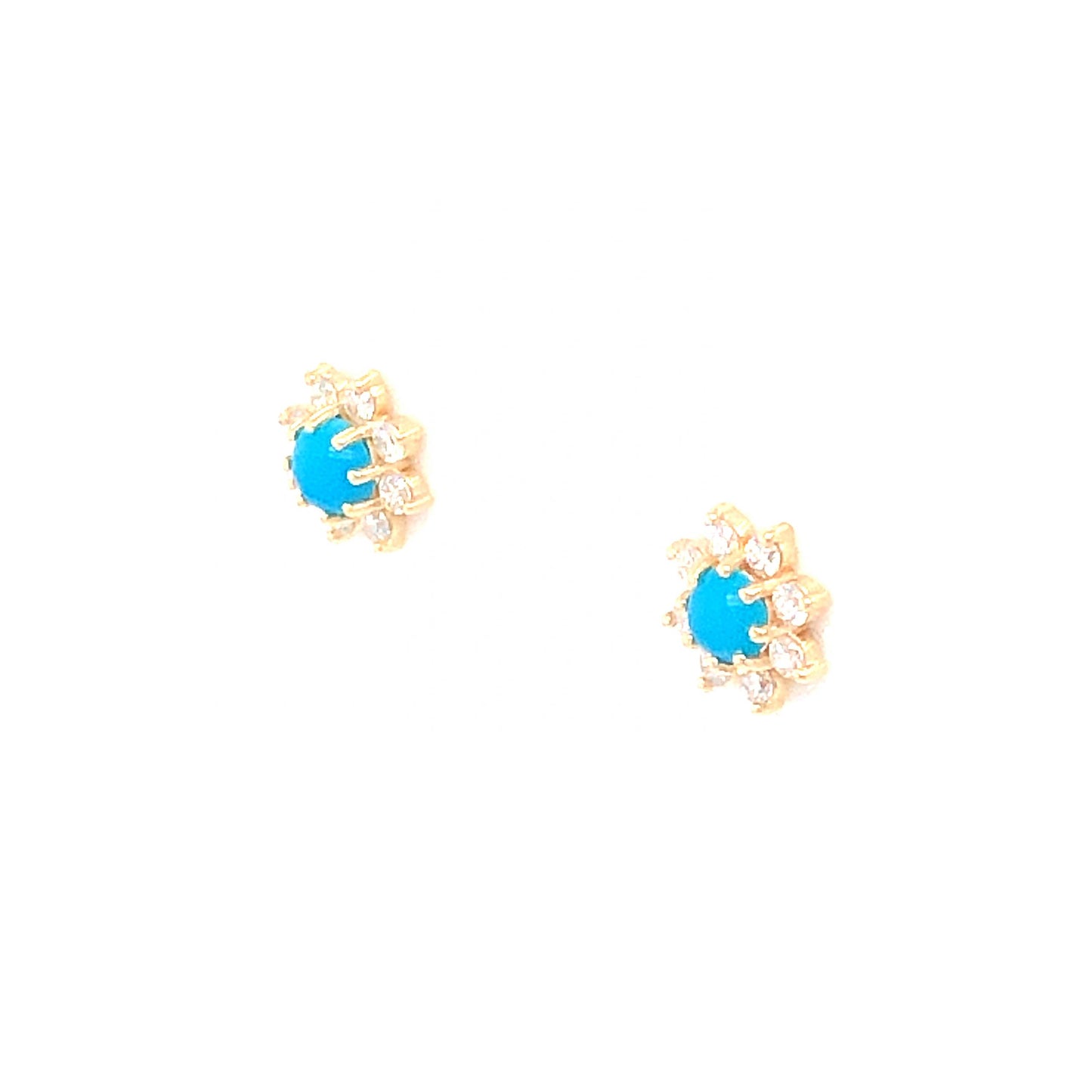 Turquoise and Diamond Stud Earrings in 14k Yellow Gold