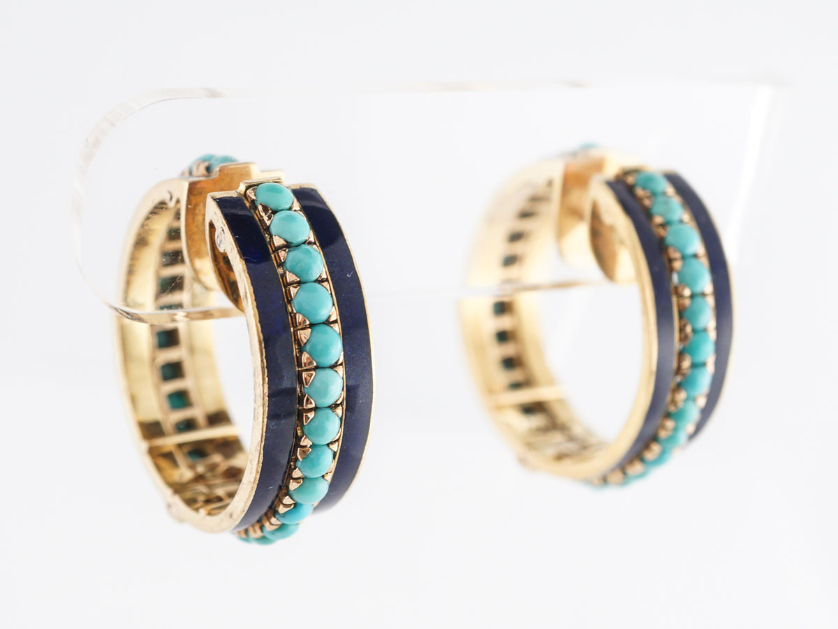 Thick Hoop Earrings w/ Turquoise in 18k Yellow Gold