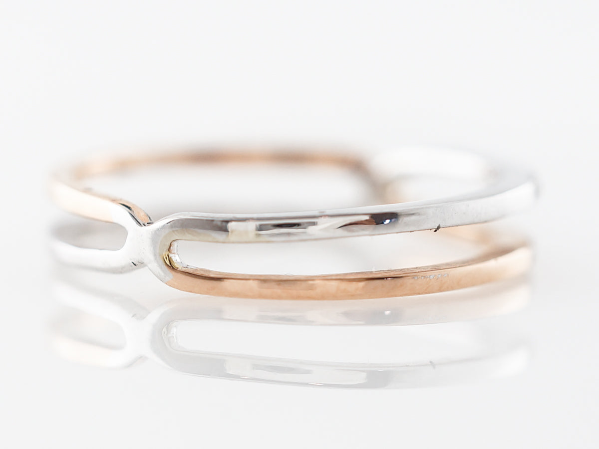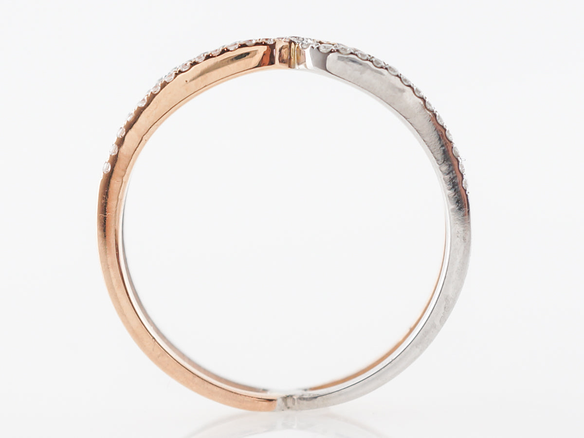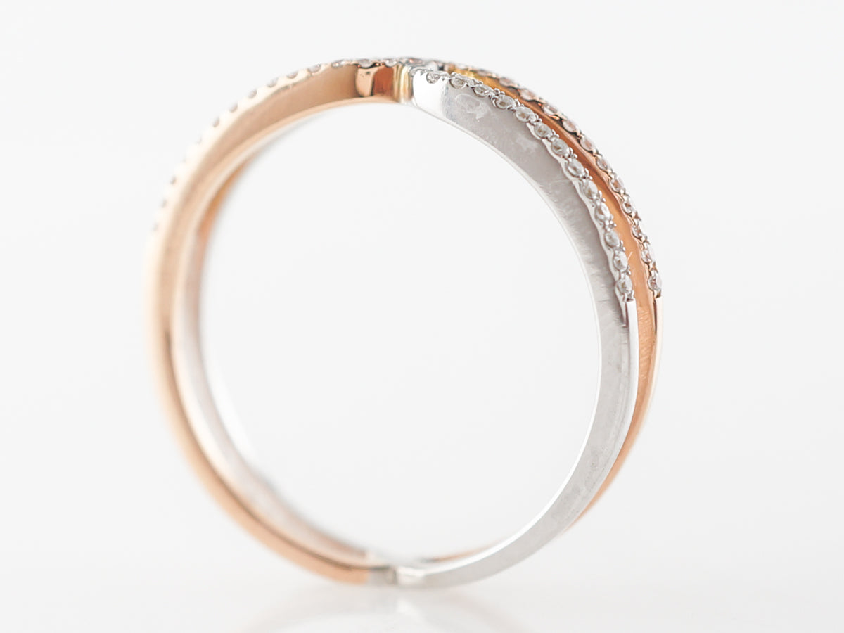 Two-Tone Diamond Ring in White and Rose Gold. This modern right hand ring features .57 carats of diamonds set in both white and rose gold. The top of the ring presents an all diamond appearance that shimmers at every turn of the hand. The criss-cross design adds a unique element to the design and allows the two-tone gold to shine!