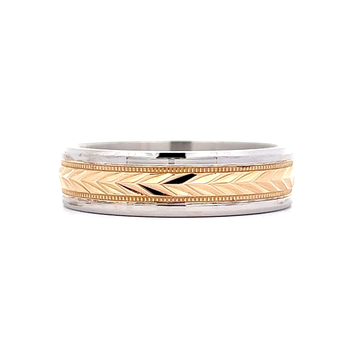 Benchmark Men's Two-Tone Chevron Pattern Wedding Band in 14k