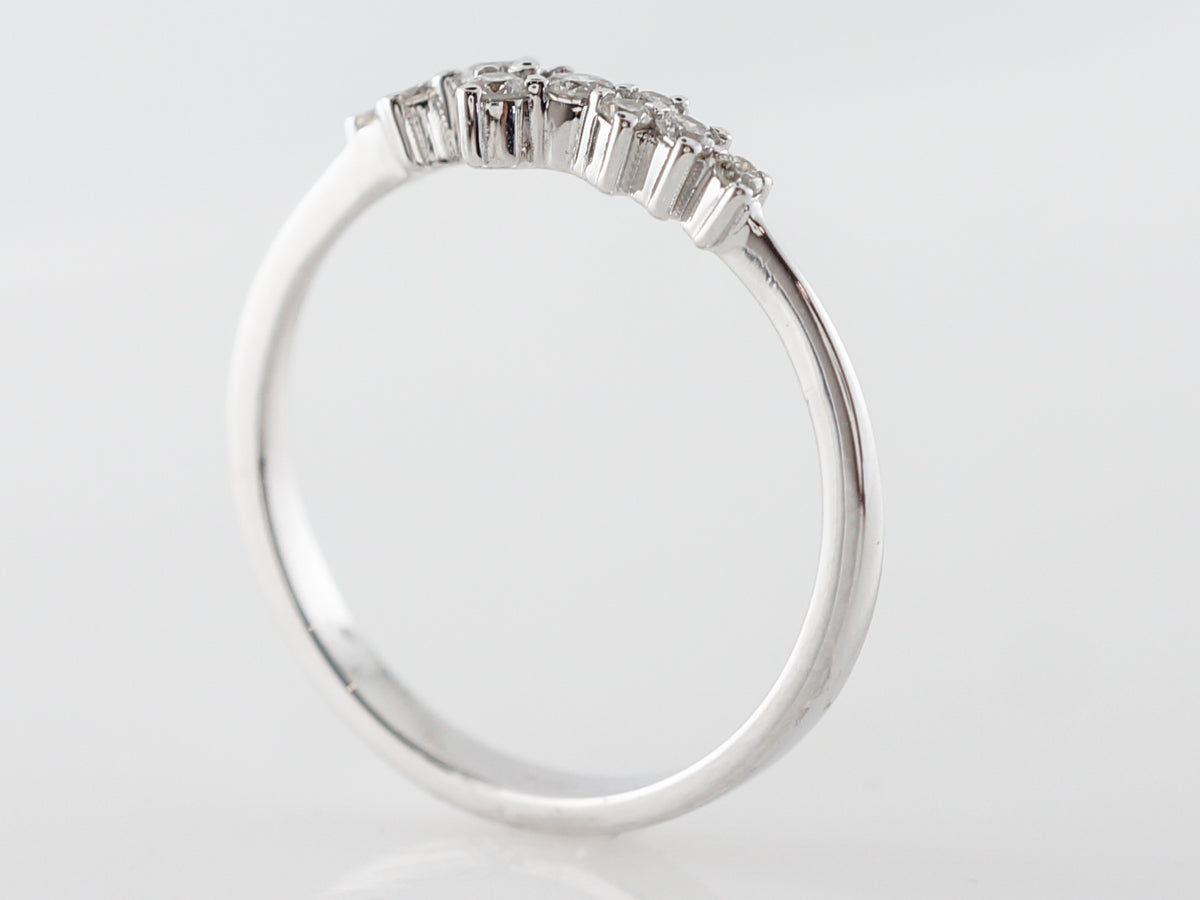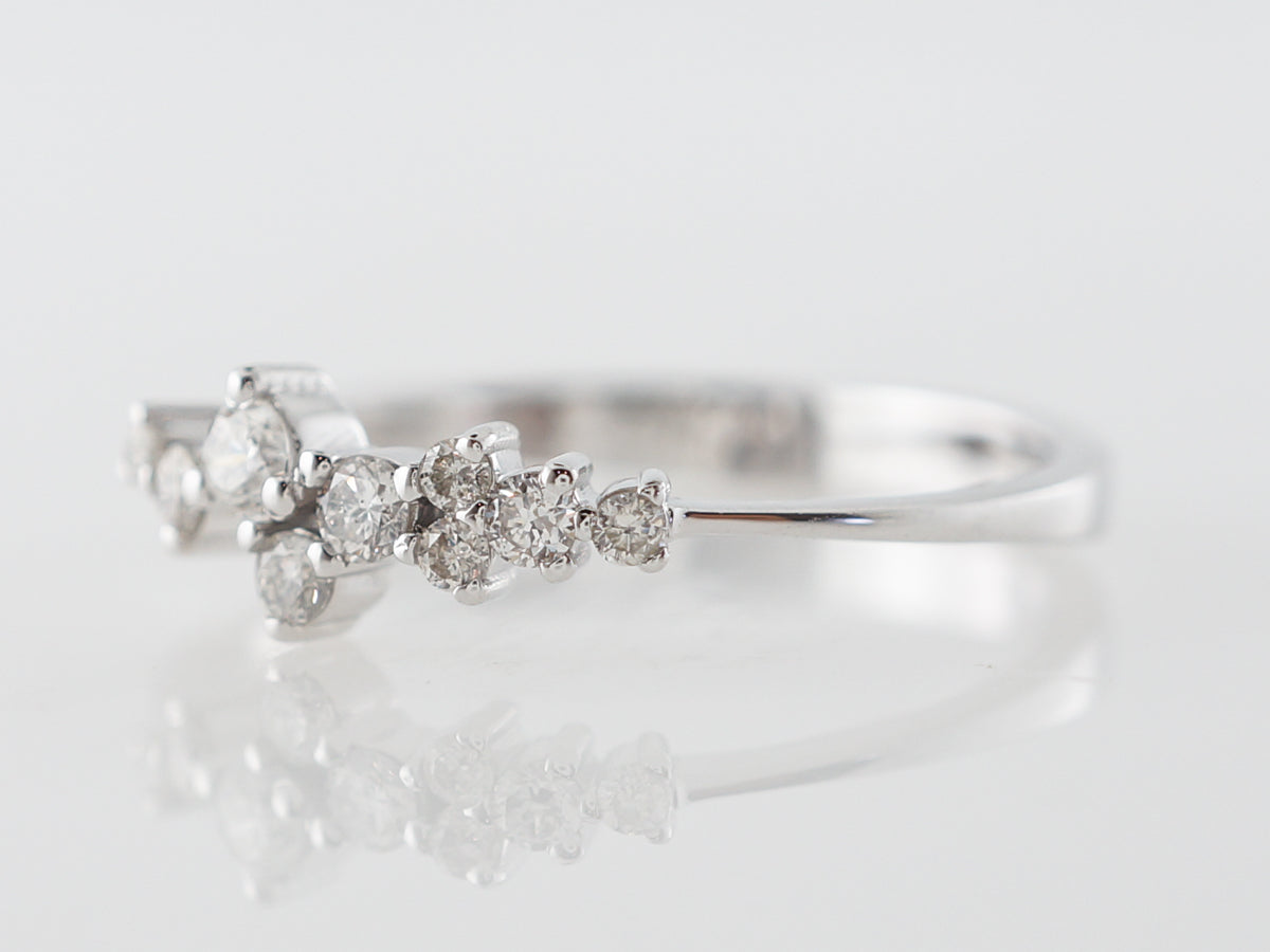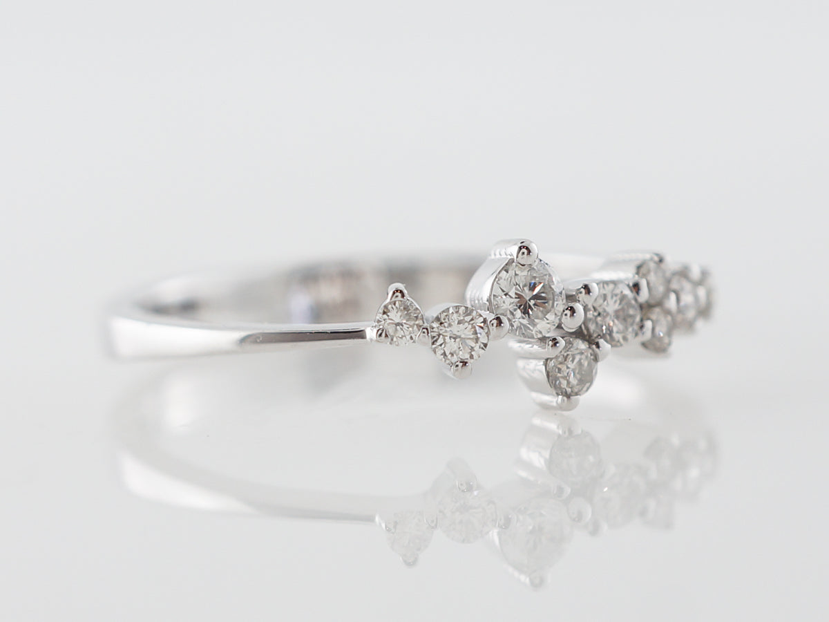 Unique Cluster Ring w/ Diamonds in White Gold. This diamond cluster ring features .21 carats of diamonds set in 18 karat white gold. The design is unique and sporadic and would look marvelous stacked with right hand rings of different colors!