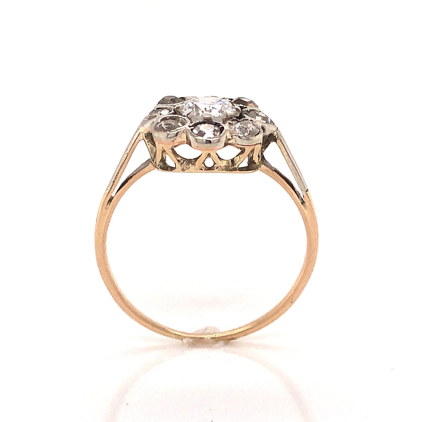 Victorian Bezel Set Diamond Cluster Engagement Ring in Silver & 14k