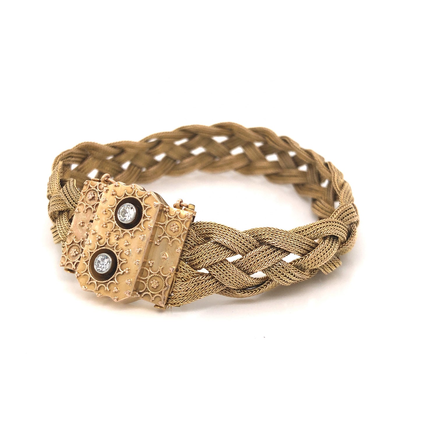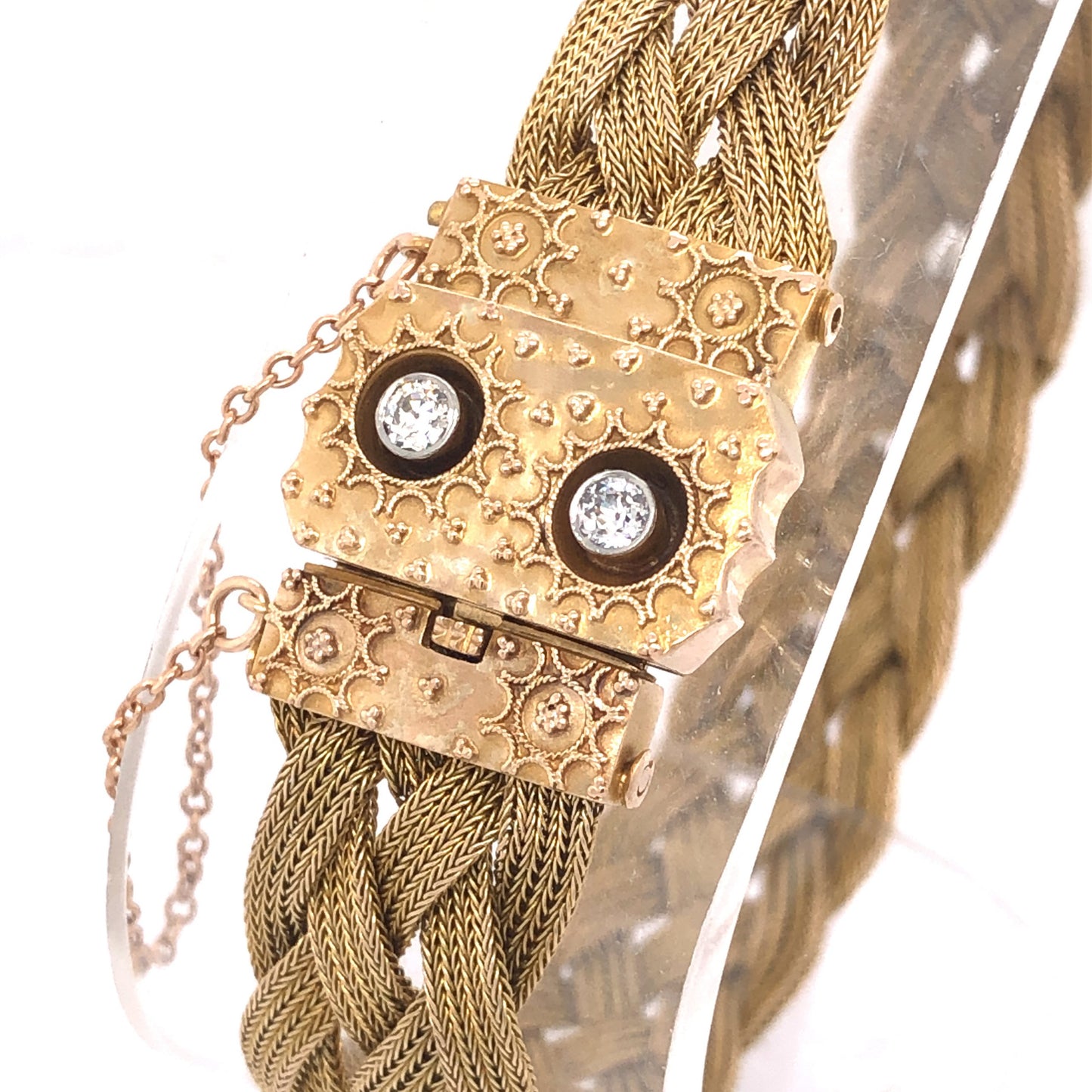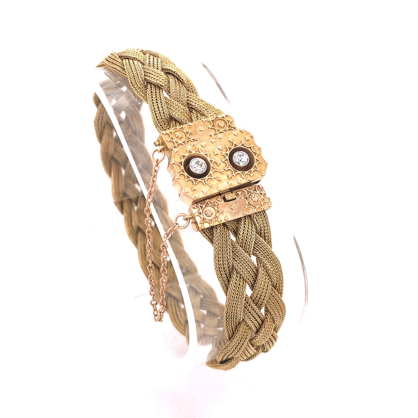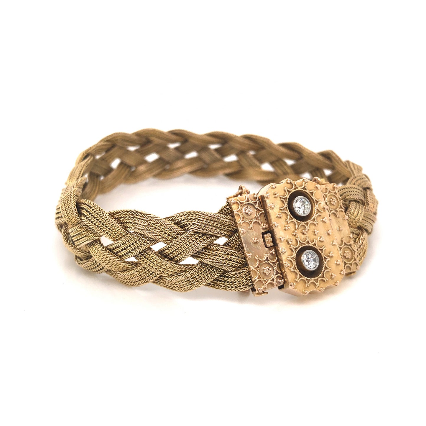 Victorian Braided Bracelet w/ Diamonds in 14k Yellow Gold