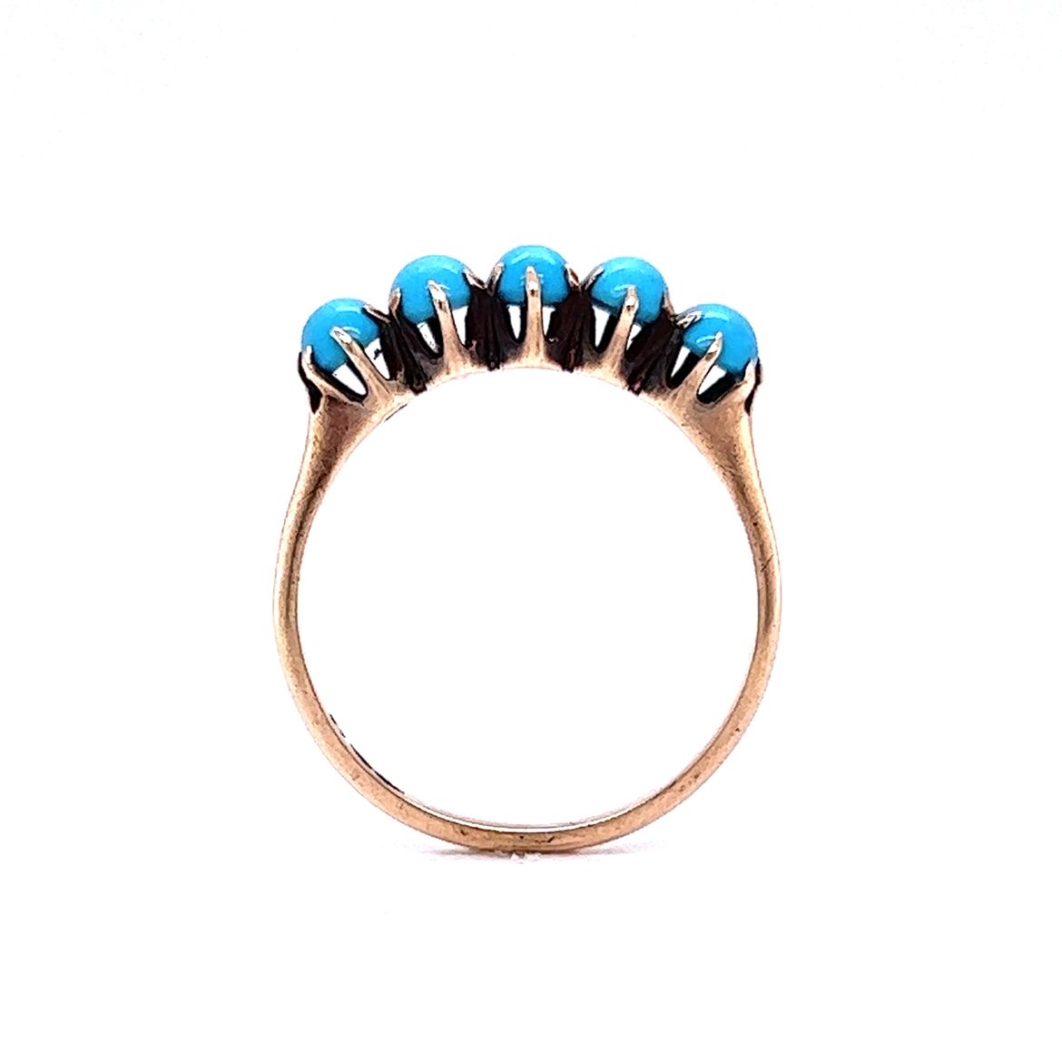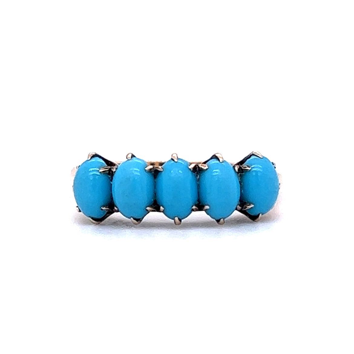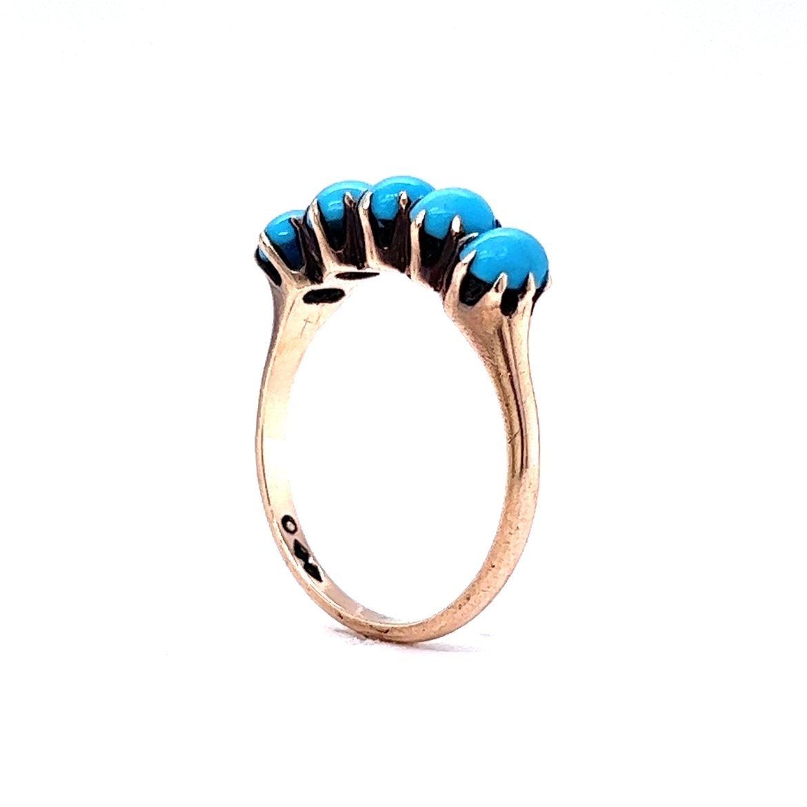 Victorian Cabochon Turquoise Five Stone Ring 10k Yellow Gold