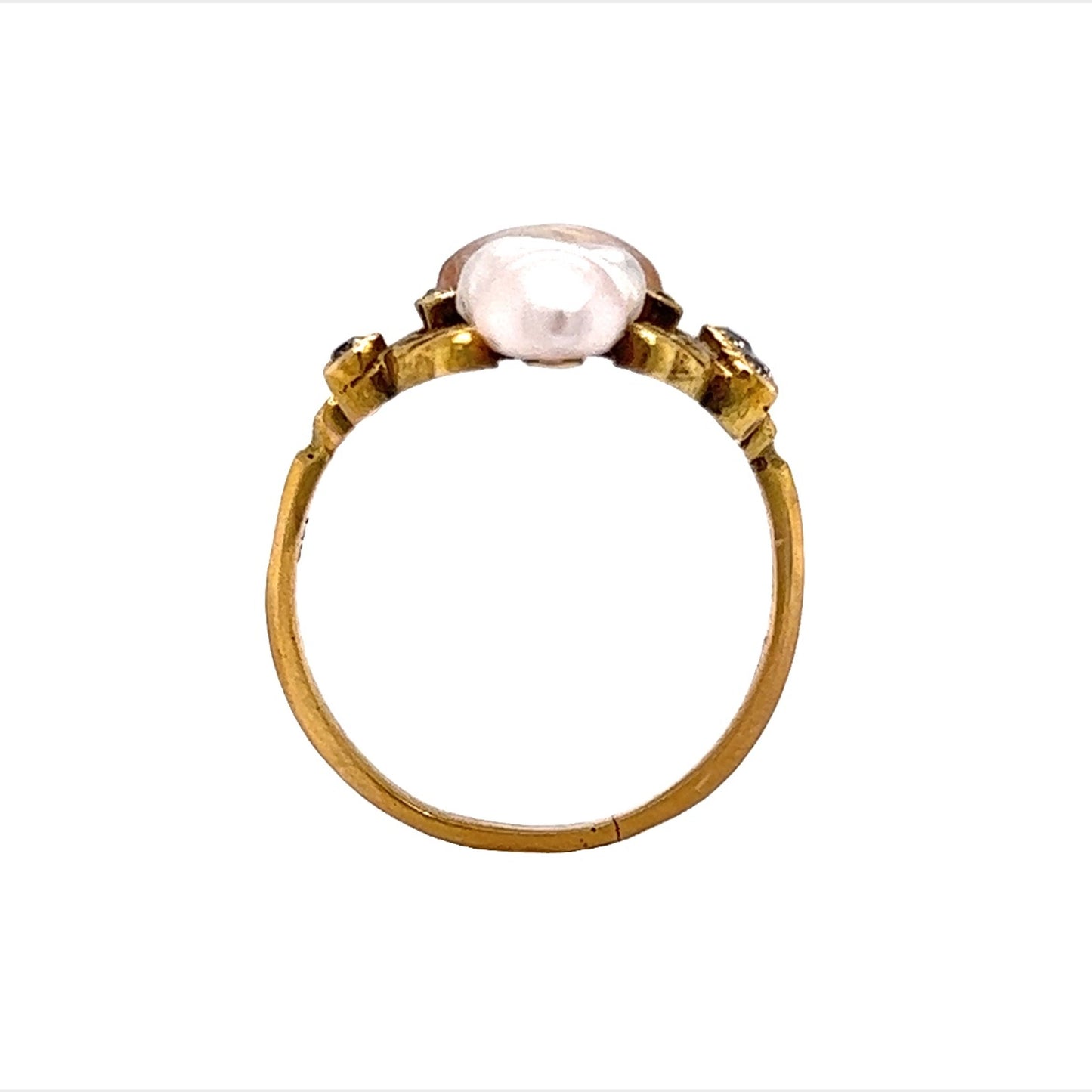 Victorian Diamond Ring w/ Keshi Pearls in Yellow Gold