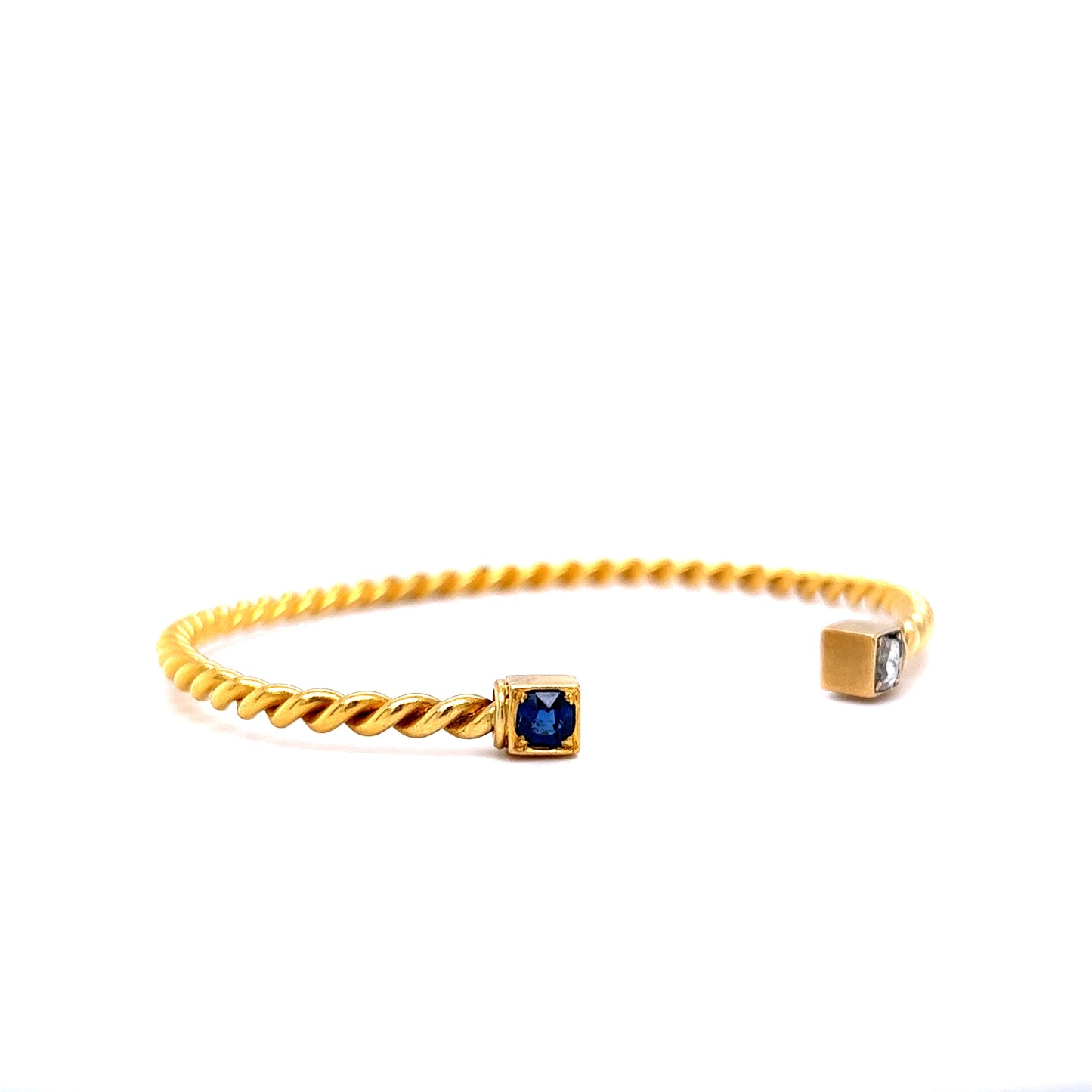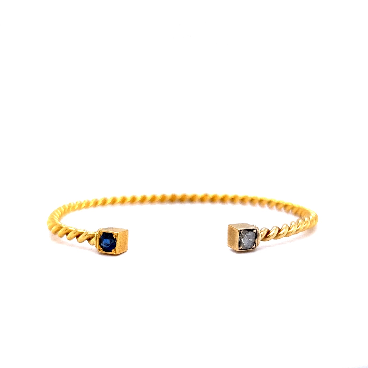 Victorian Diamond & Sapphire Twist Bangle Bracelet in 18k Yellow Gold