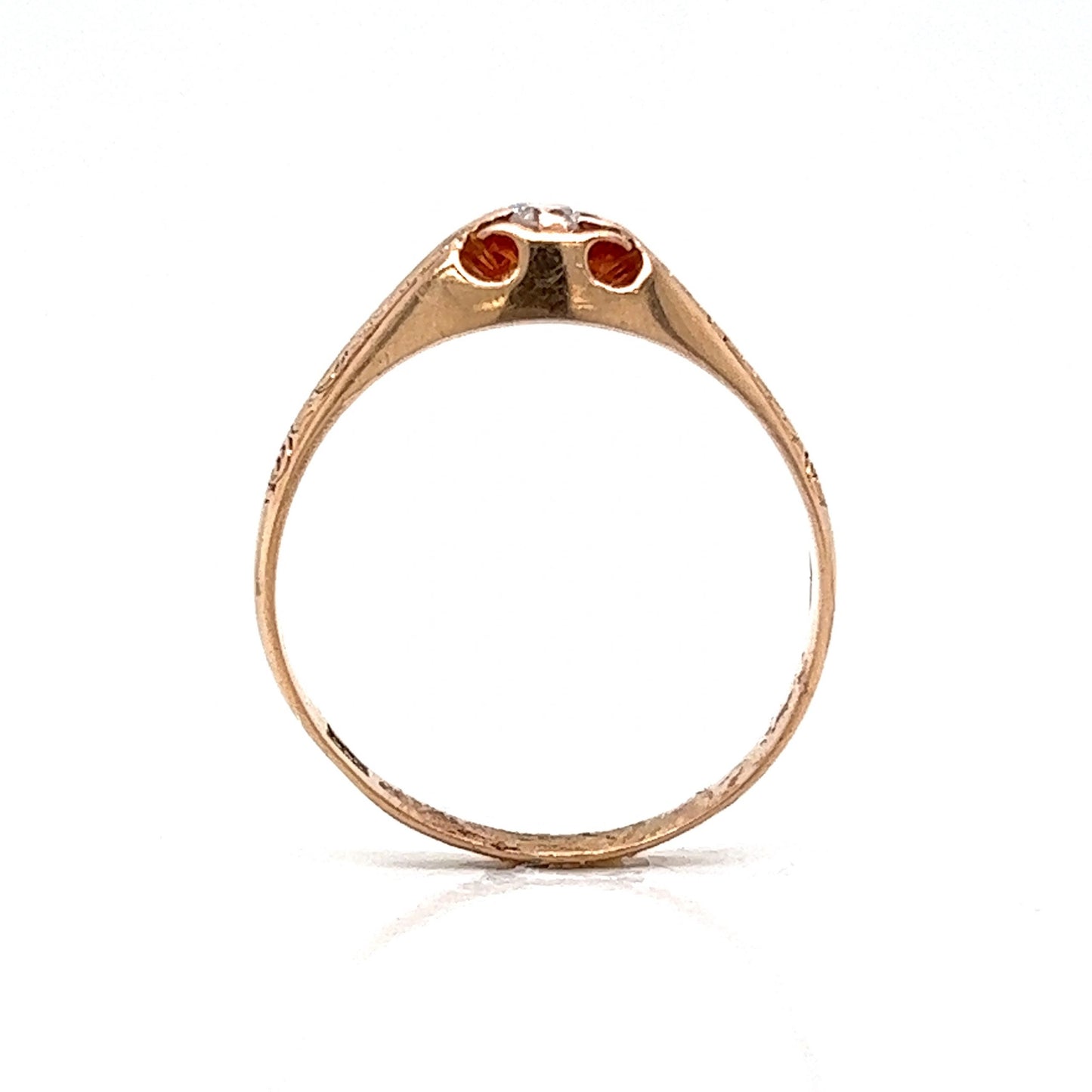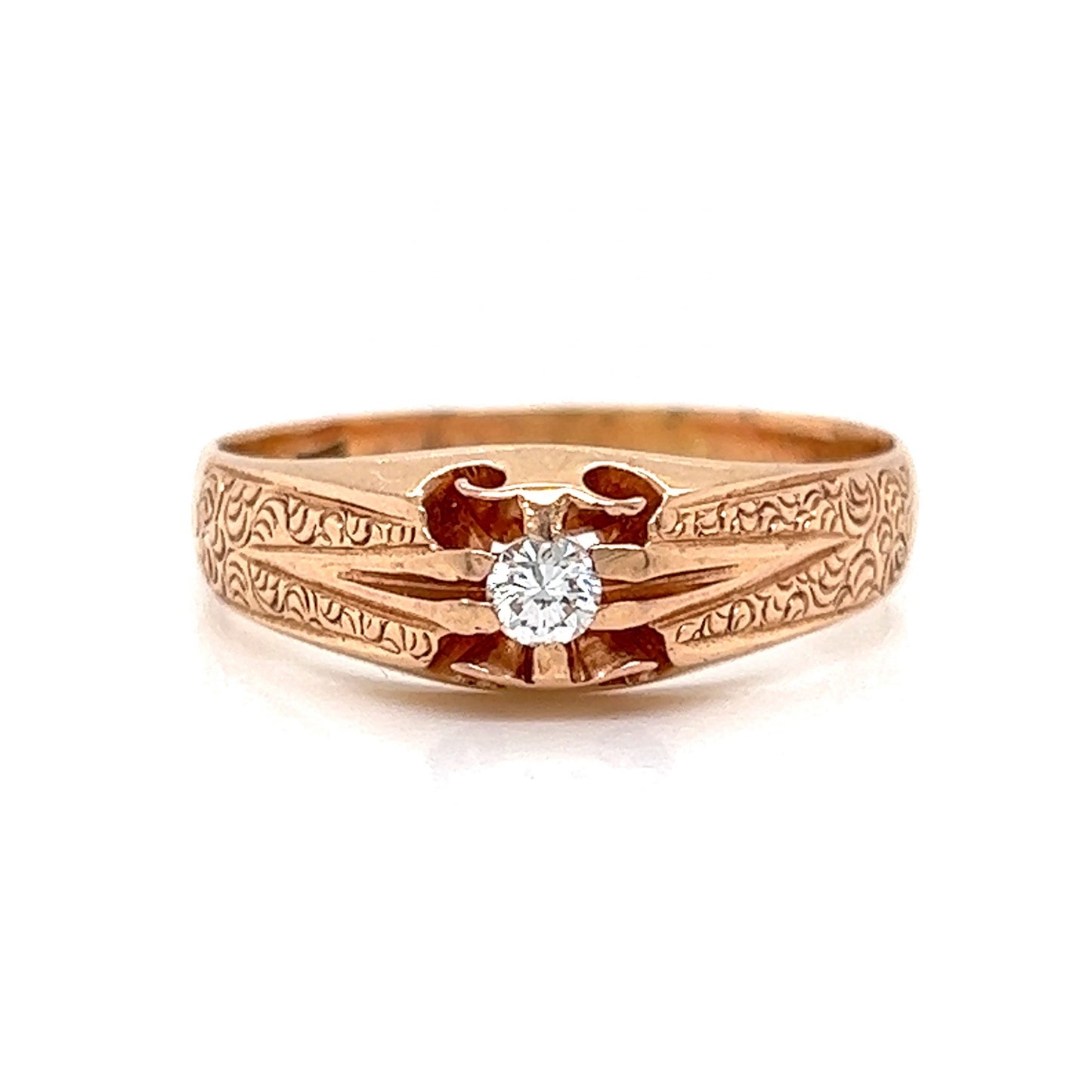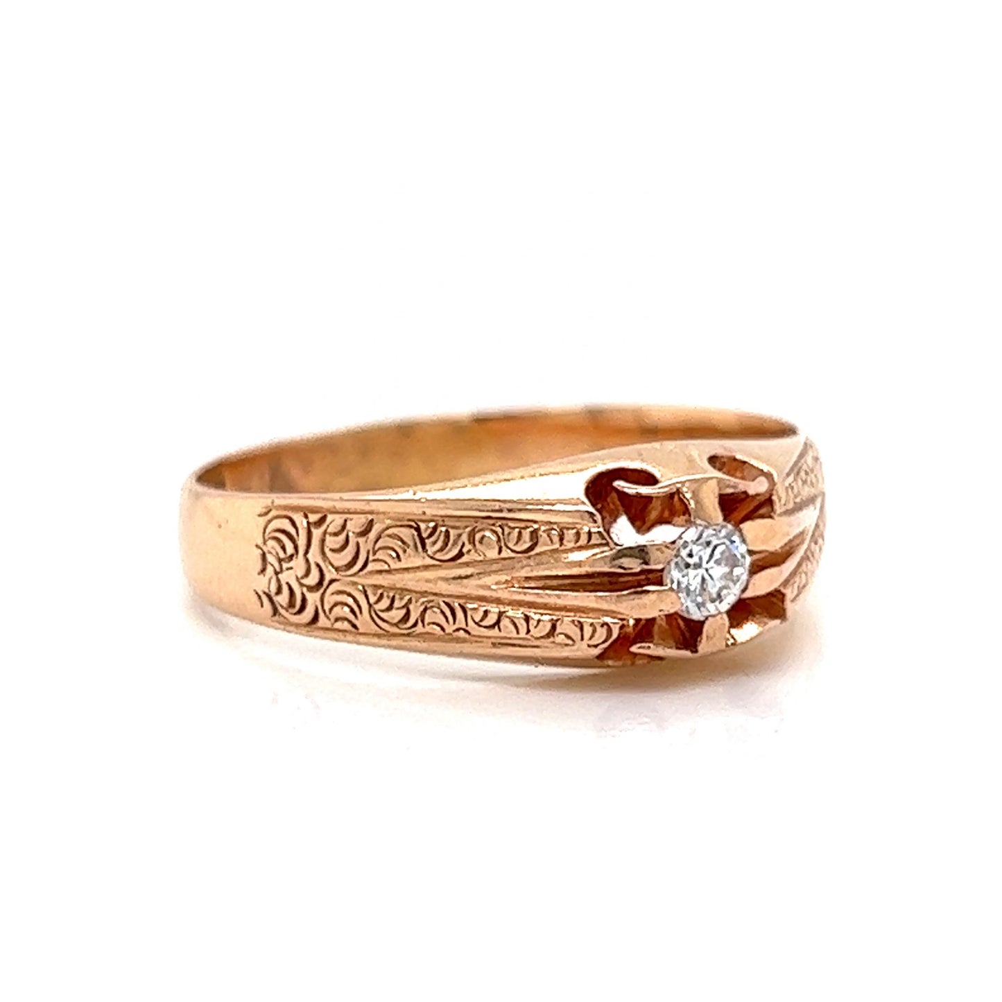 Victorian Engraved Single Diamond Ring in 14k Rose Gold