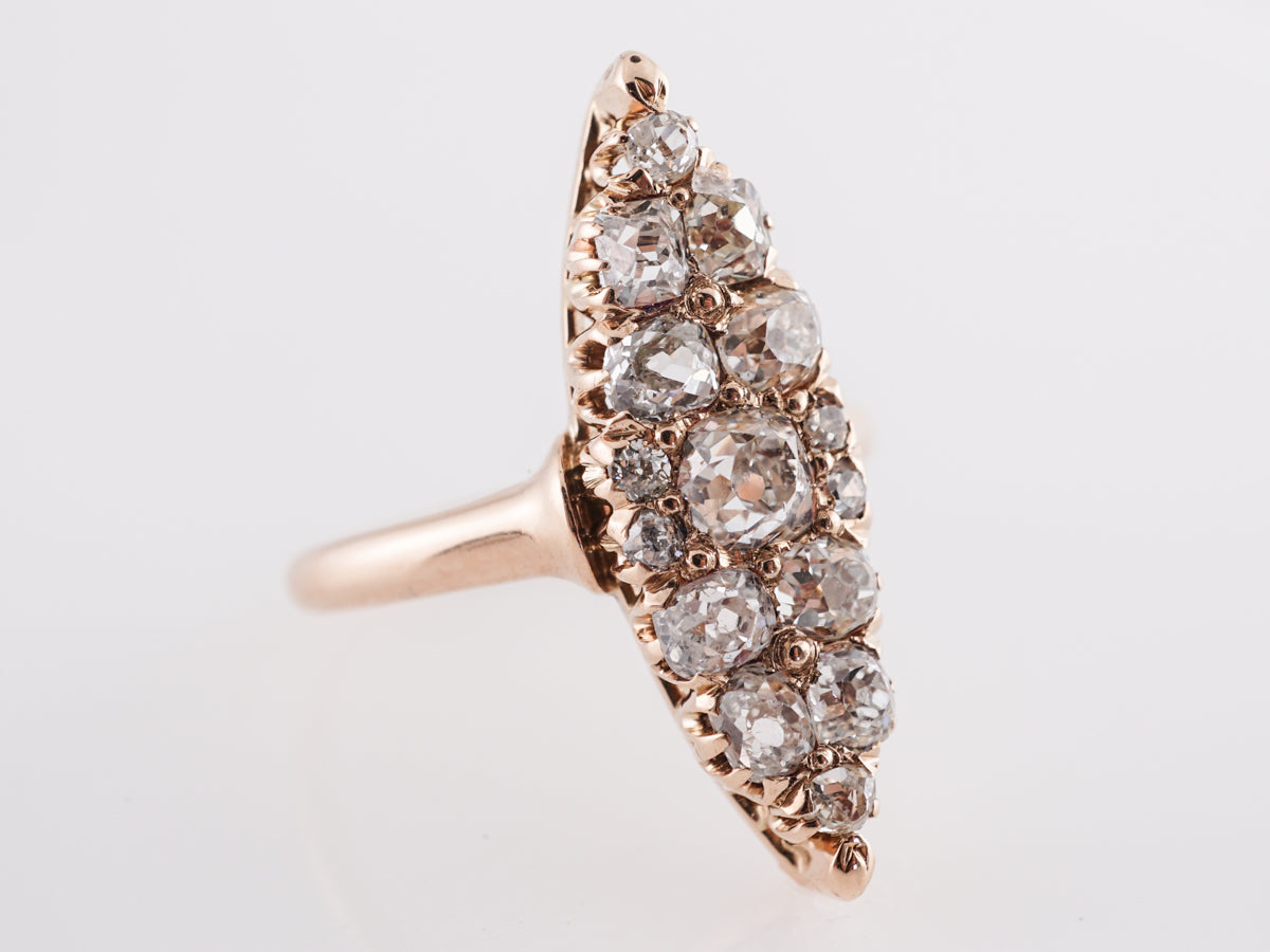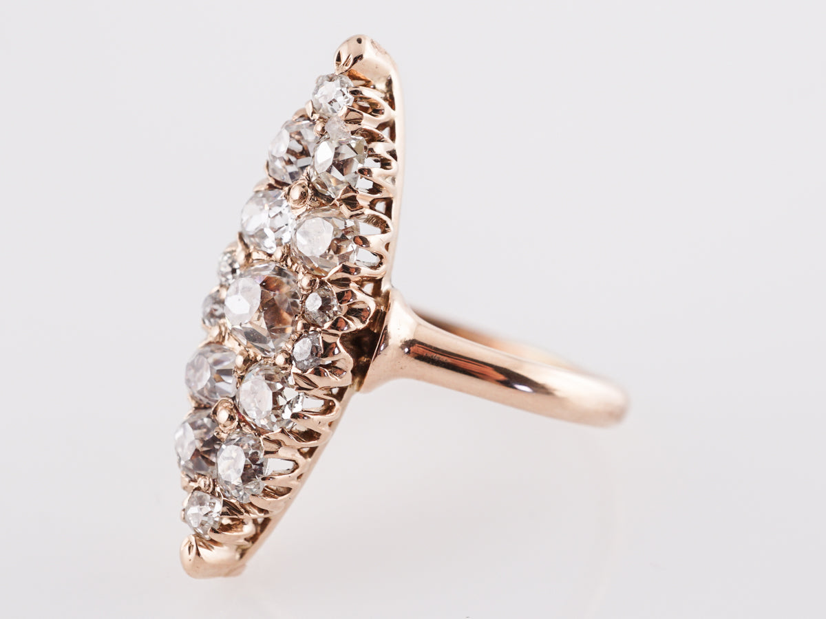 Victorian Navette Diamond Cocktail Ring in 14k Yellow Gold