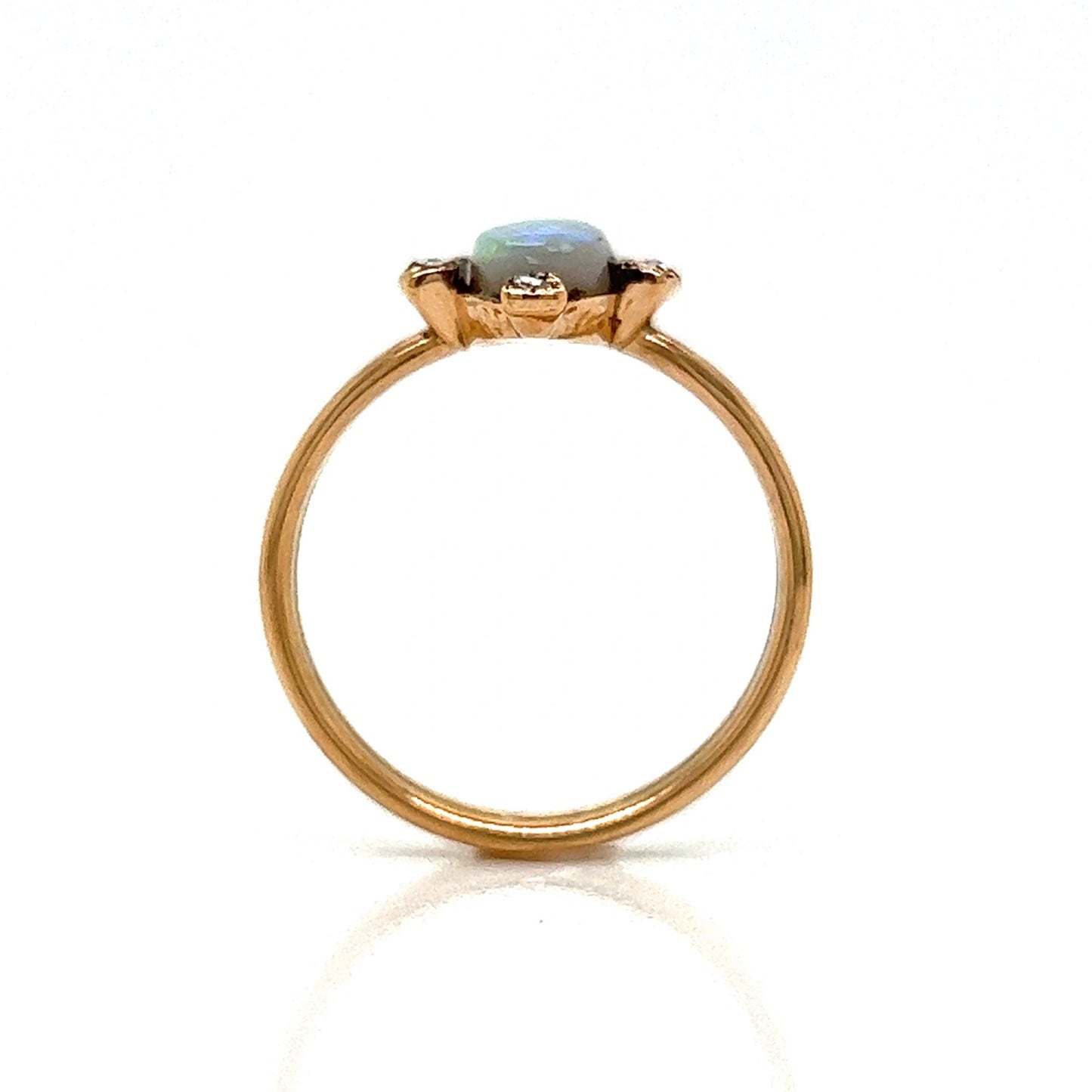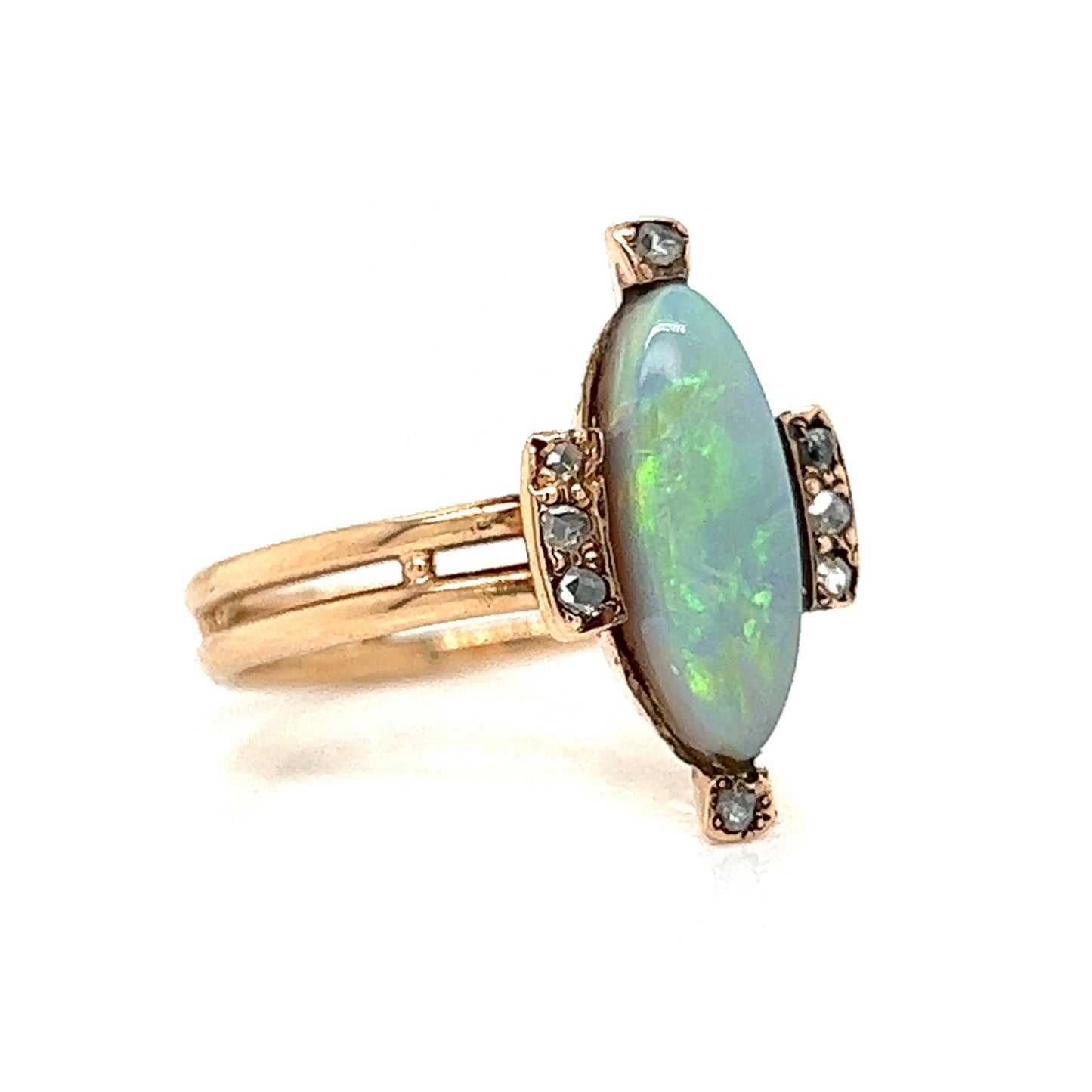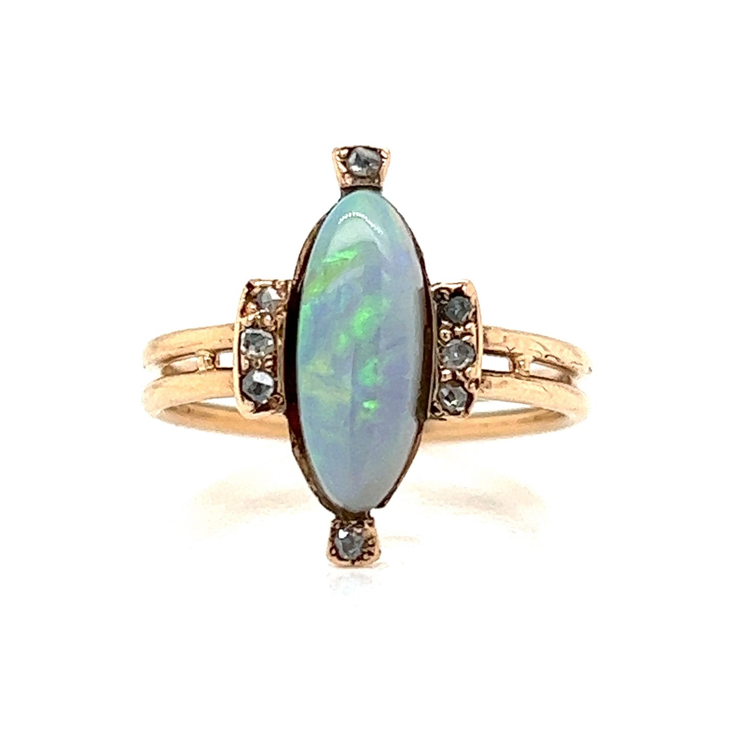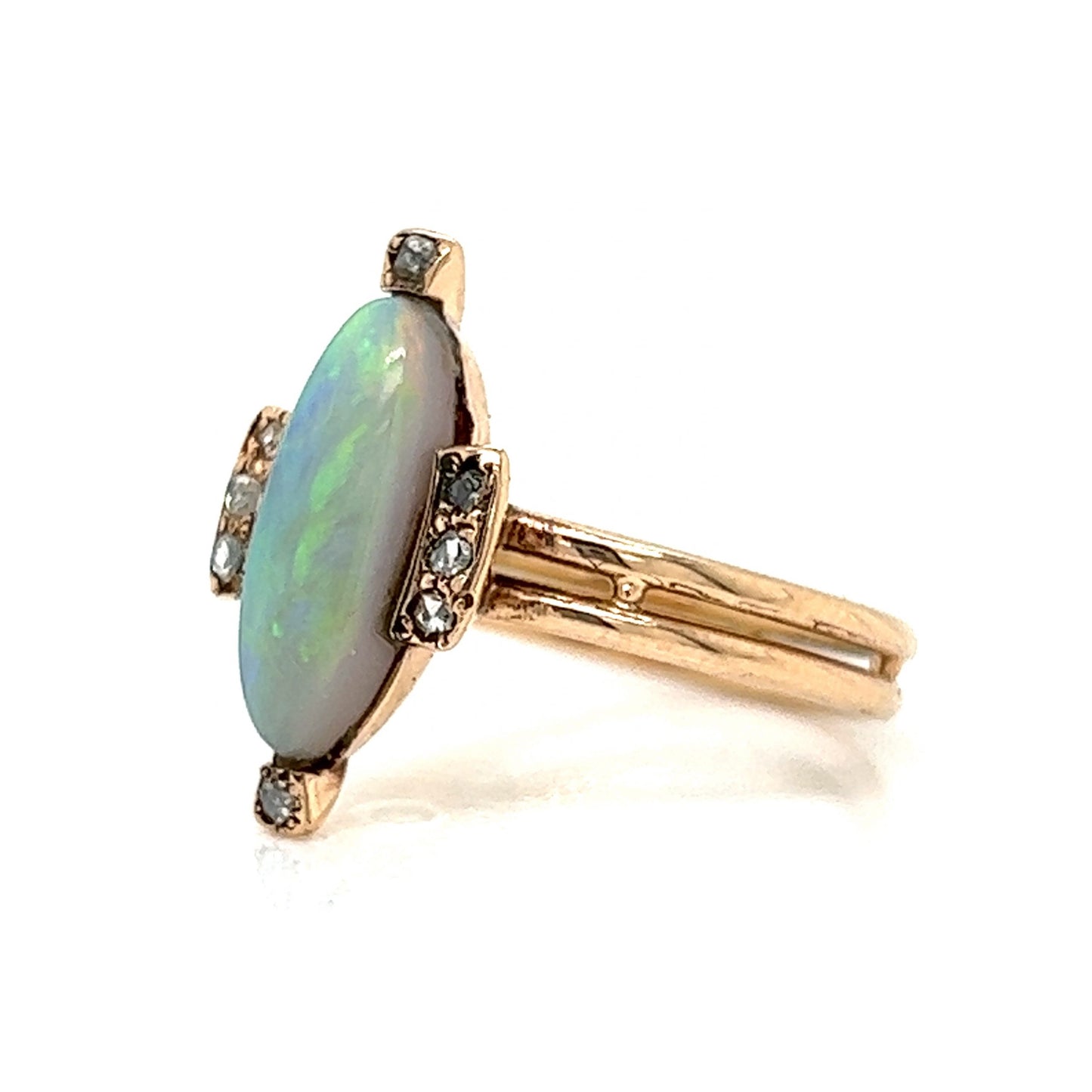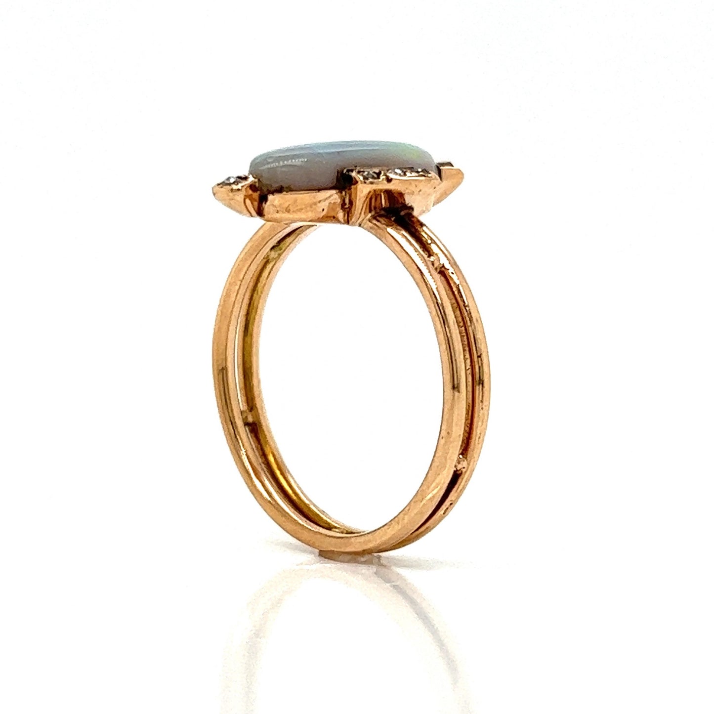 Victorian Oval Opal & Diamond Ring in 14k Yellow Gold