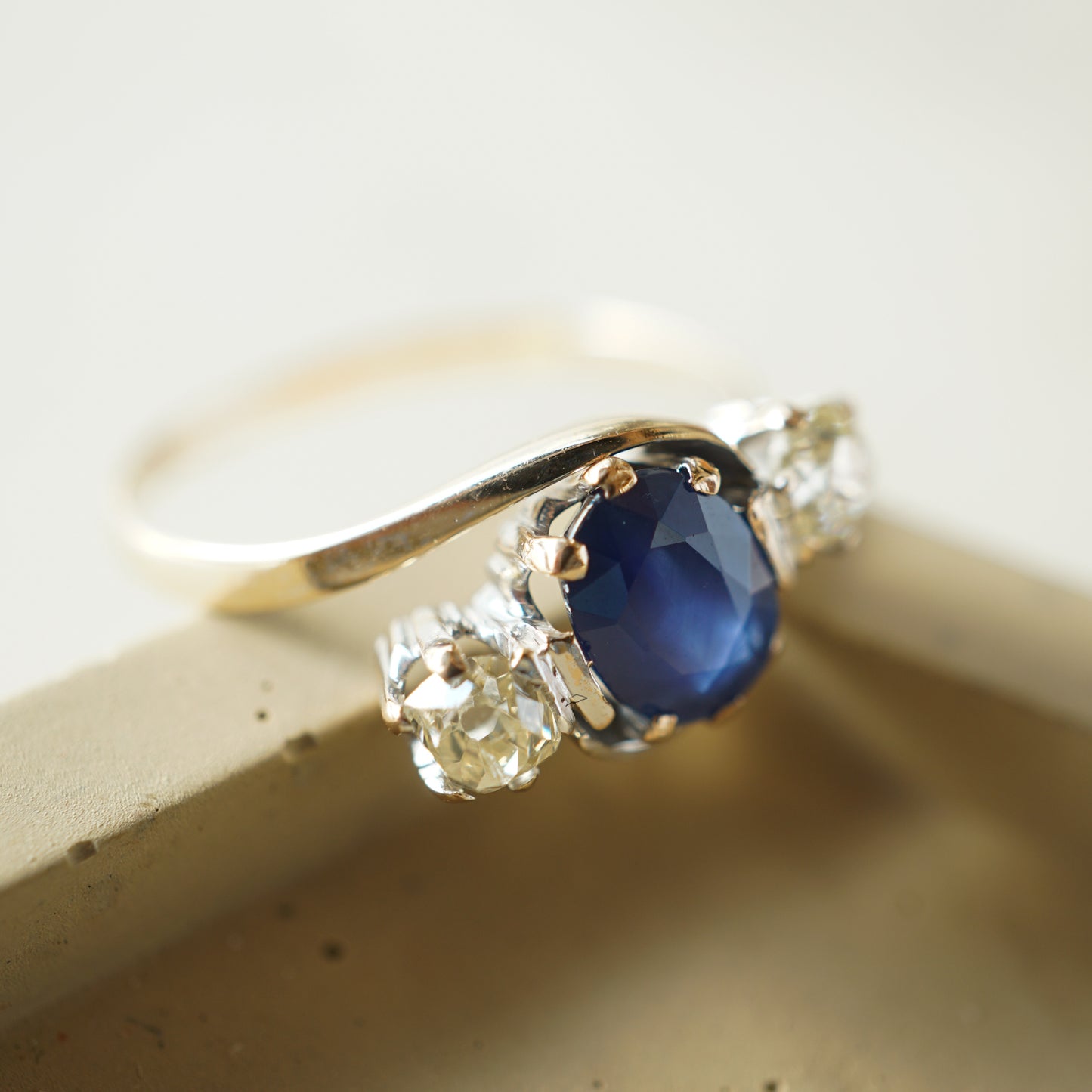 Victorian Sapphire & Diamond Engagement Ring in 14k Yellow Gold