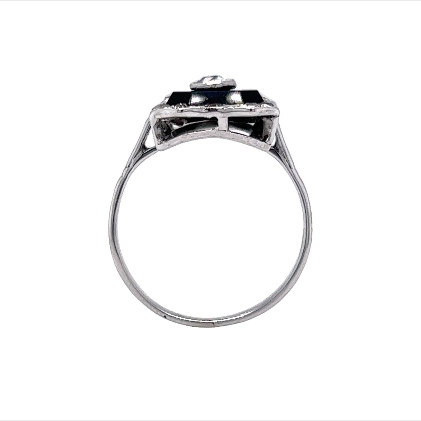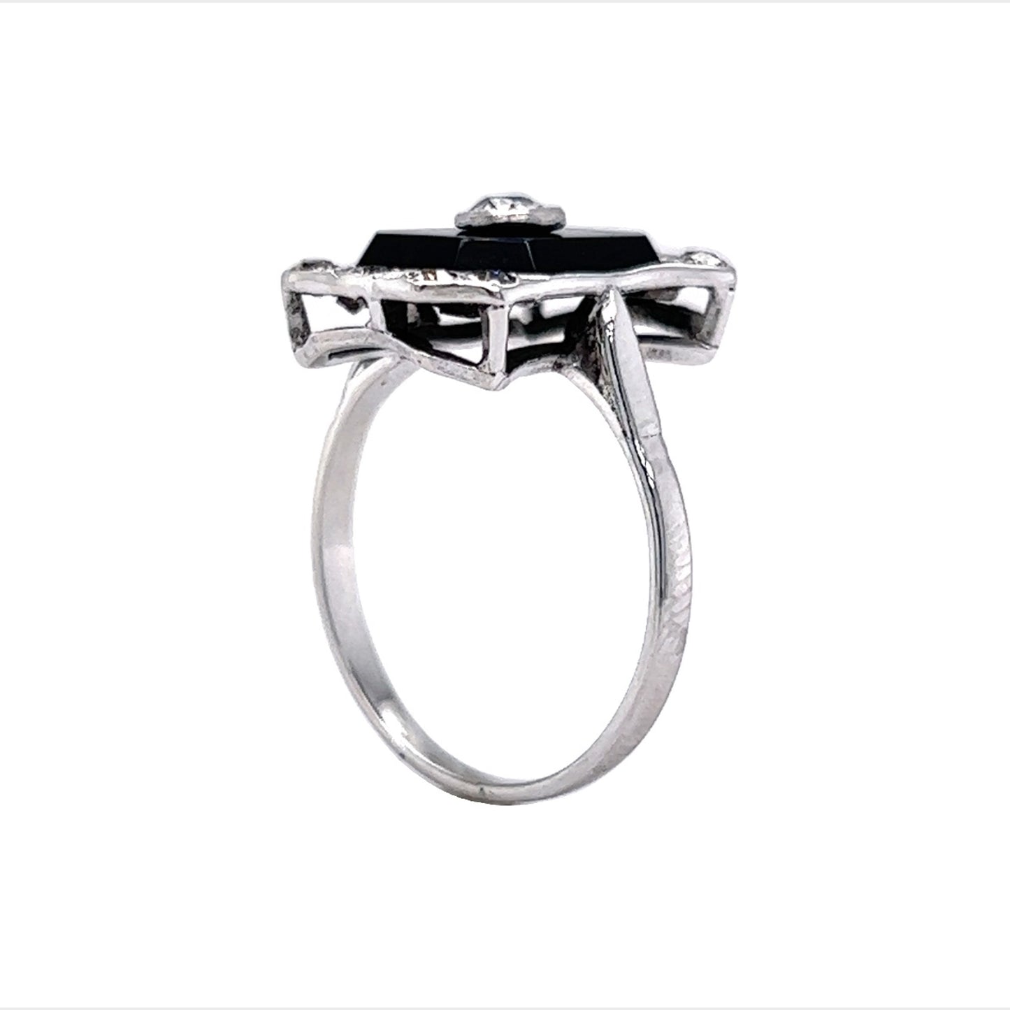 Vintage 1920's Onyx & Diamond Ring in 14k White Gold