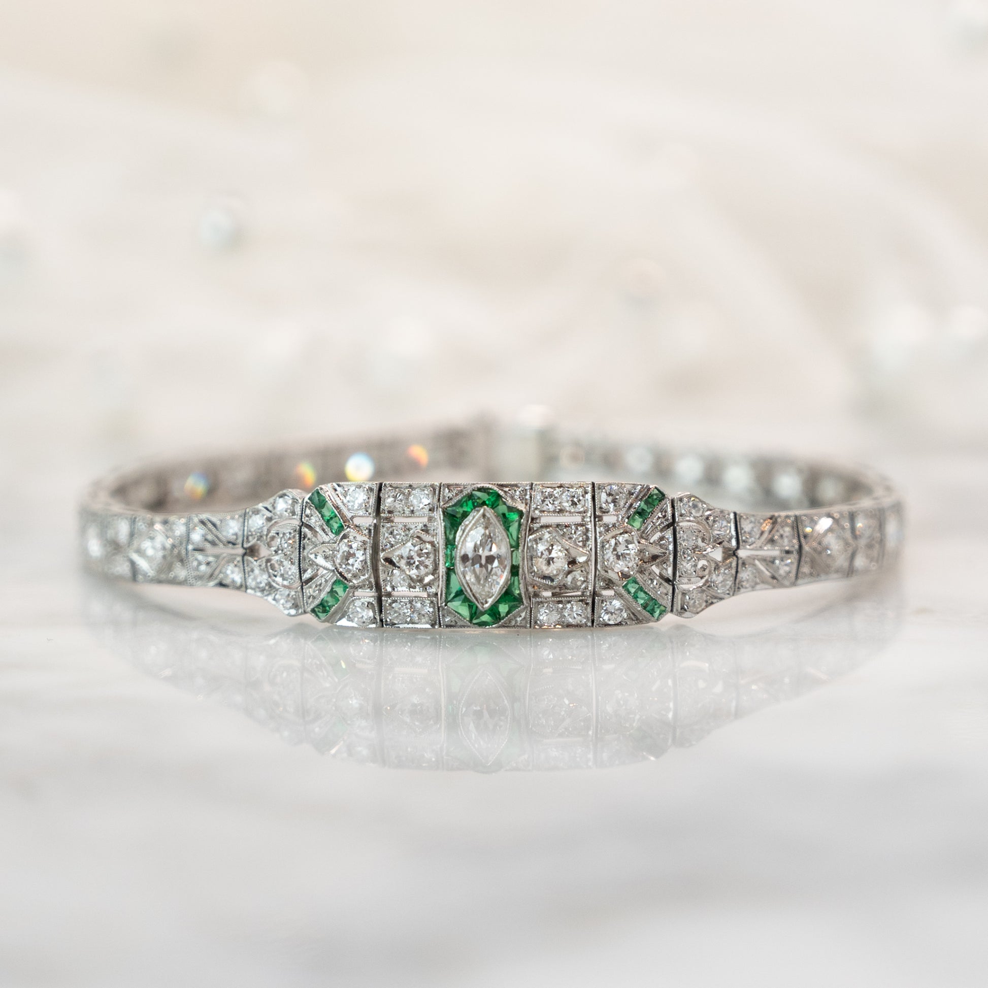 Vintage Art Deco Emerald & Diamond Bracelet in Platinum