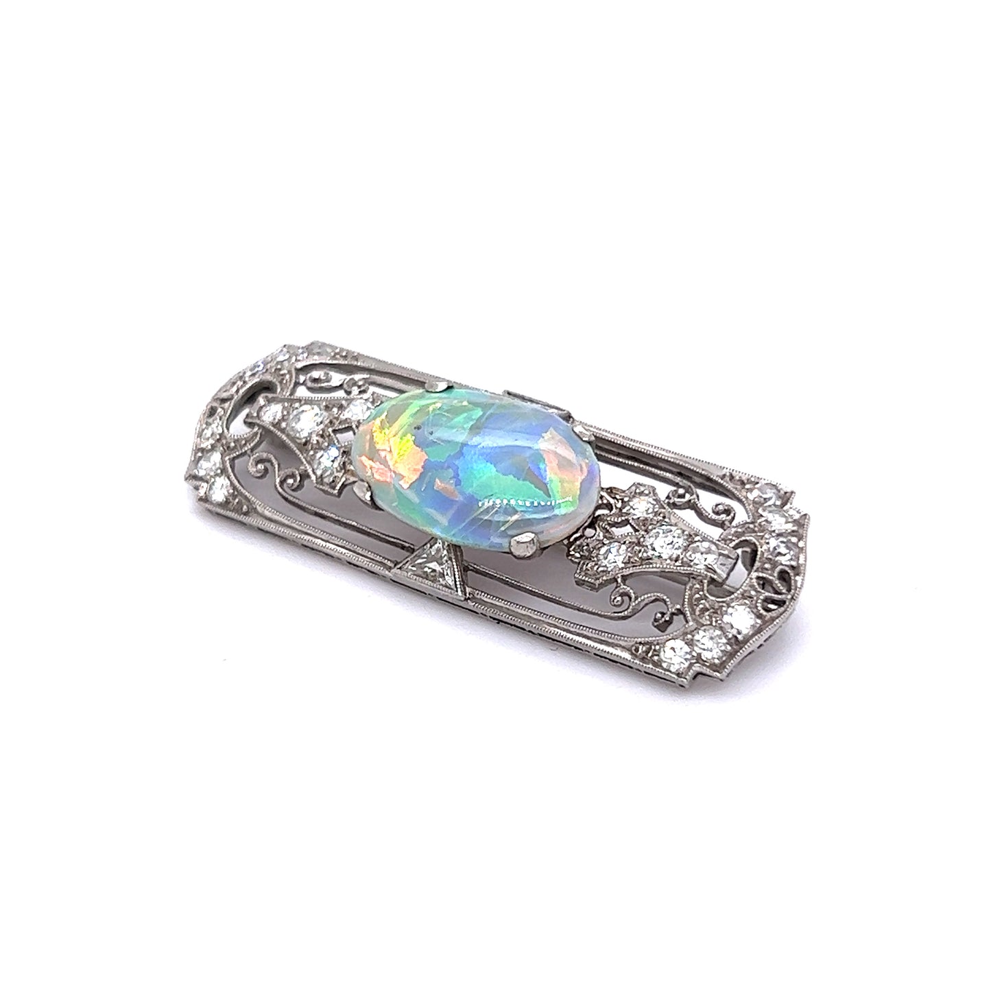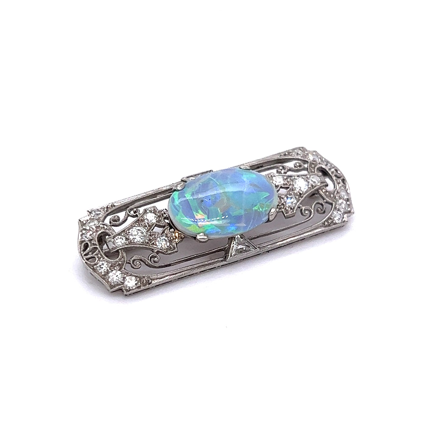 Vintage Art Deco Opal Brooch in 14k White Gold