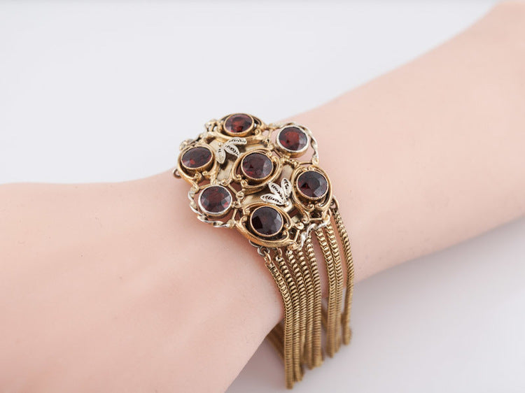Vintage Bracelet Retro 9.73cttw Round Cut Garnets in 14k Yellow Gold