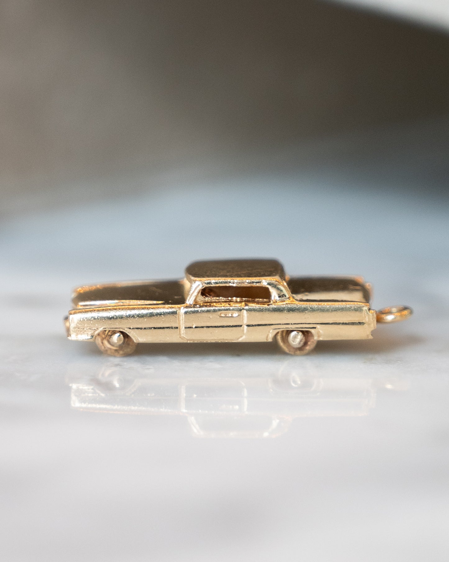 This 14-karat yellow gold car measures one inch long and shows off the classic lines of mid-century automobiles. The little details capture what made those golden age cars so special. It's the right size to add to a necklace or bracelet, and car lovers will get a kick out of the period-accurate styling. The solid gold construction gives it some real weight and presence for such a small piece.