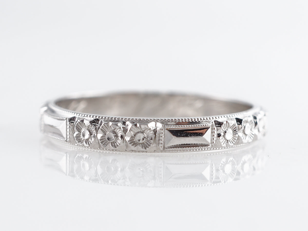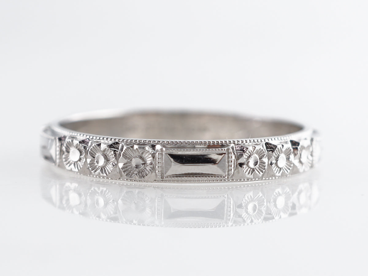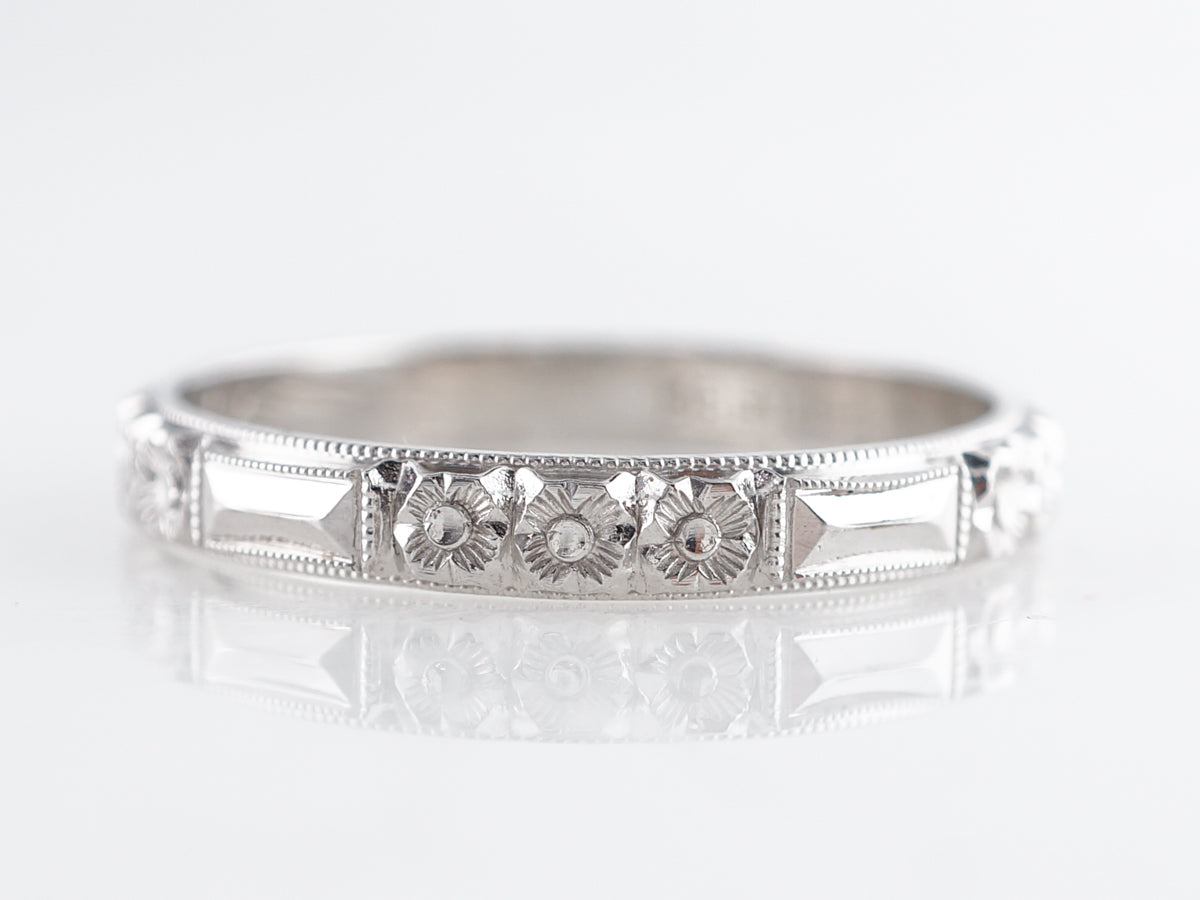 Vintage Deco Men's Band w/ Engraving in 18k White Gold