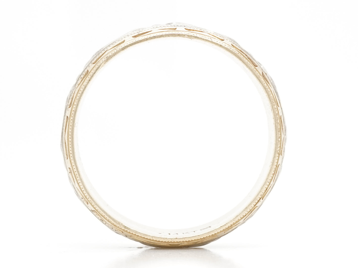 Vintage Deco Two-Tone Engraved Wedding Band in 14K