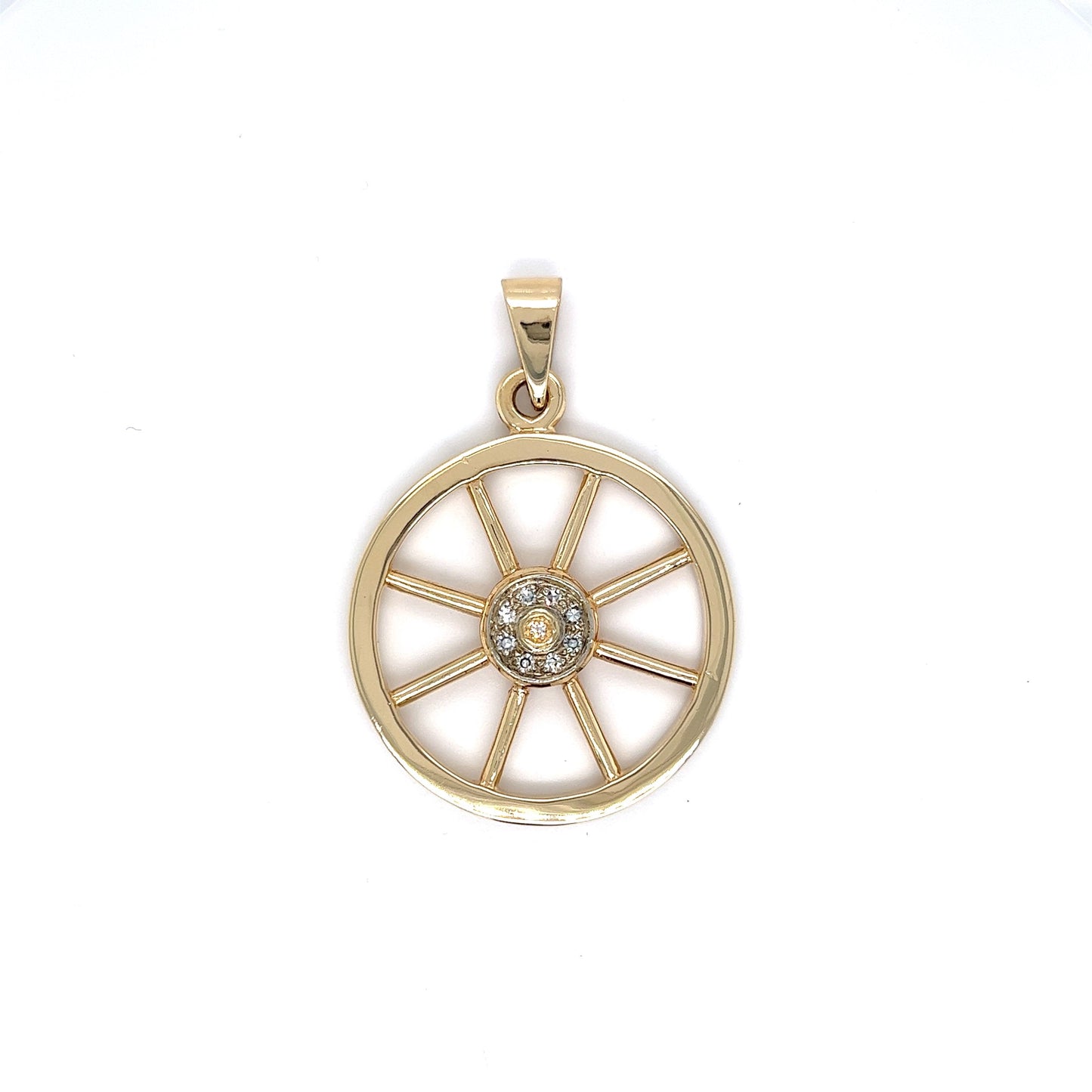 Vintage Diamond Wagon Wheel Pendant in 14k Yellow Gold