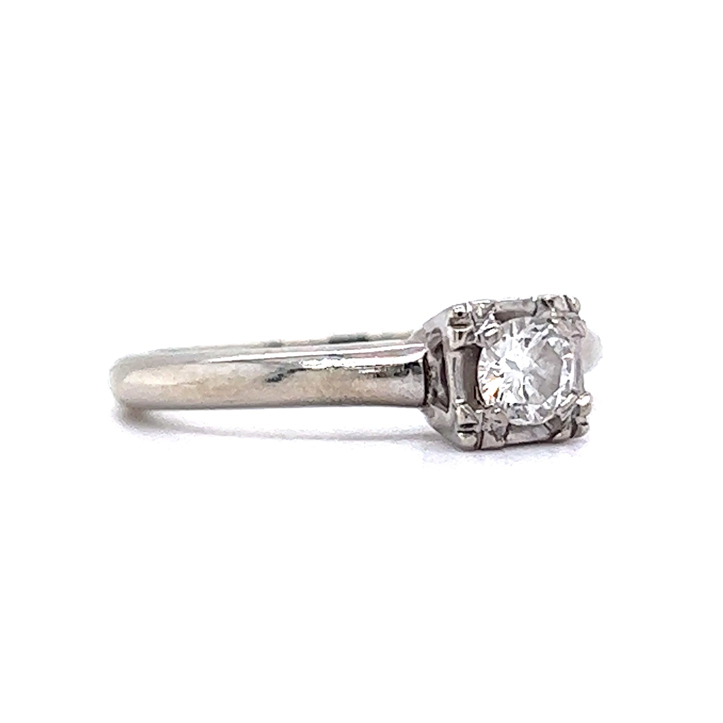Vintage Engagement Ring Mid-Century .20 Round Brilliant Cut Diamond in 14K White Gold