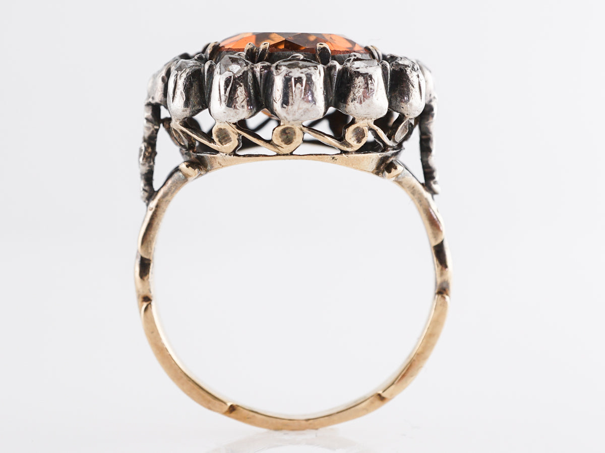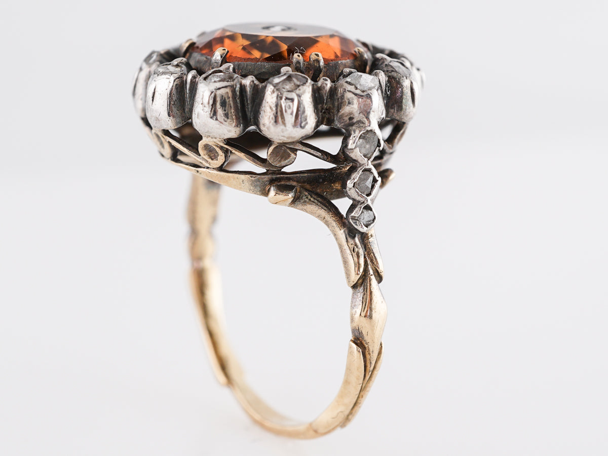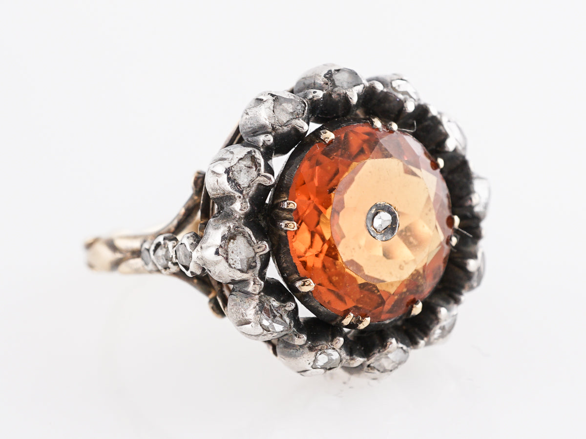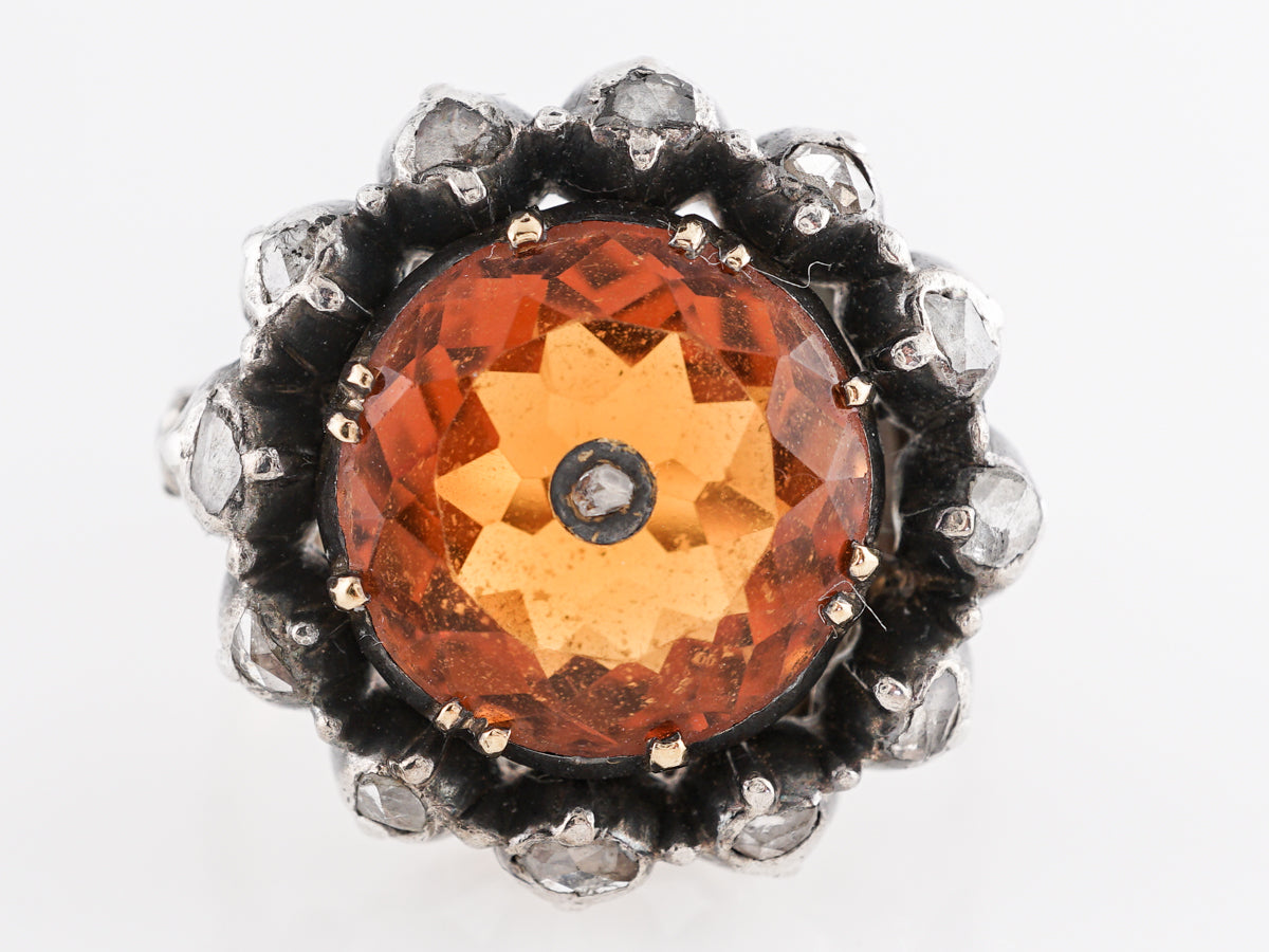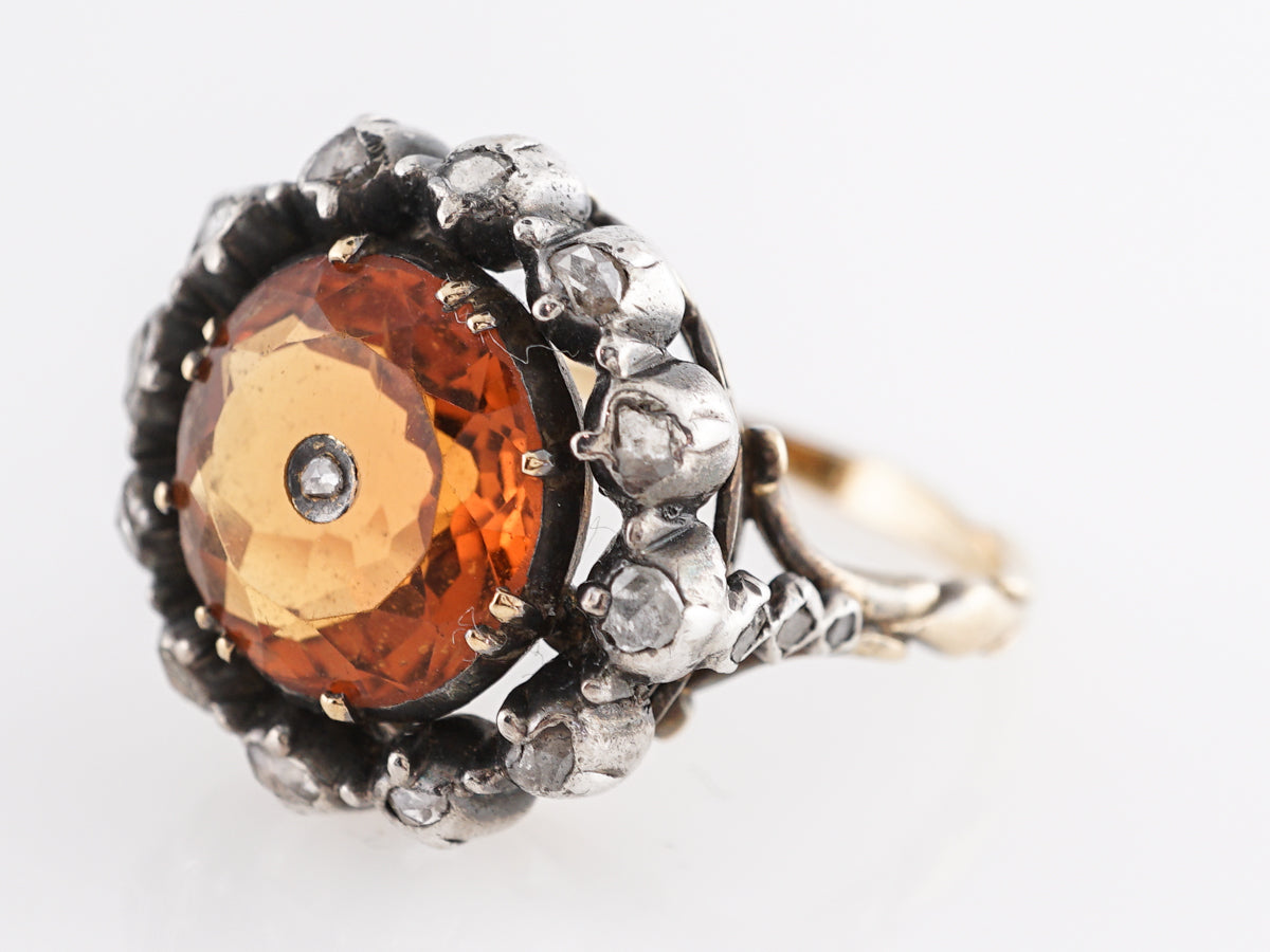 Vintage Georgian Citrine and Diamond Ring in Gold & Sterling