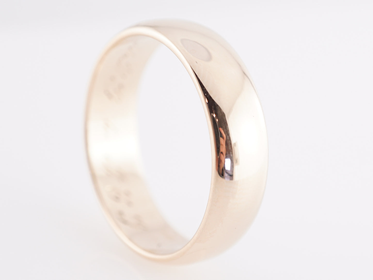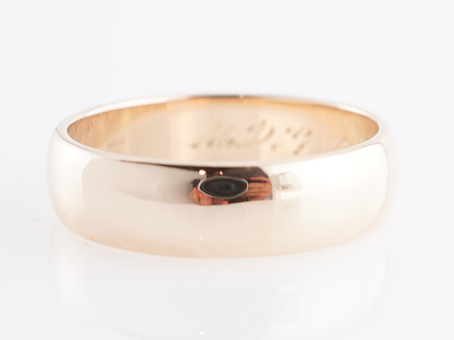 Vintage Mens Wedding Band in 14k Yellow Gold. This vintage men’s wedding band is approximately 6mm in width and has the original engraving.