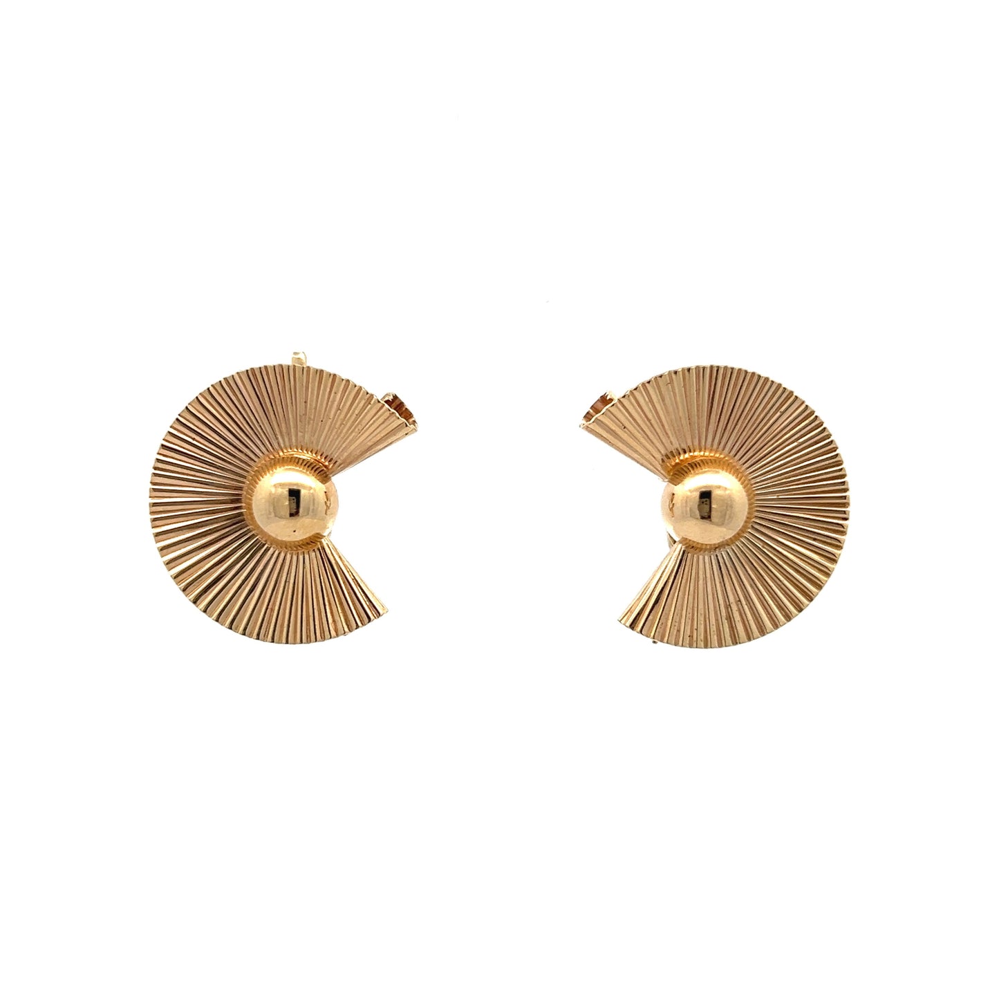 Vintage Mid-Century Fan Earrings in 14k Yellow Gold
