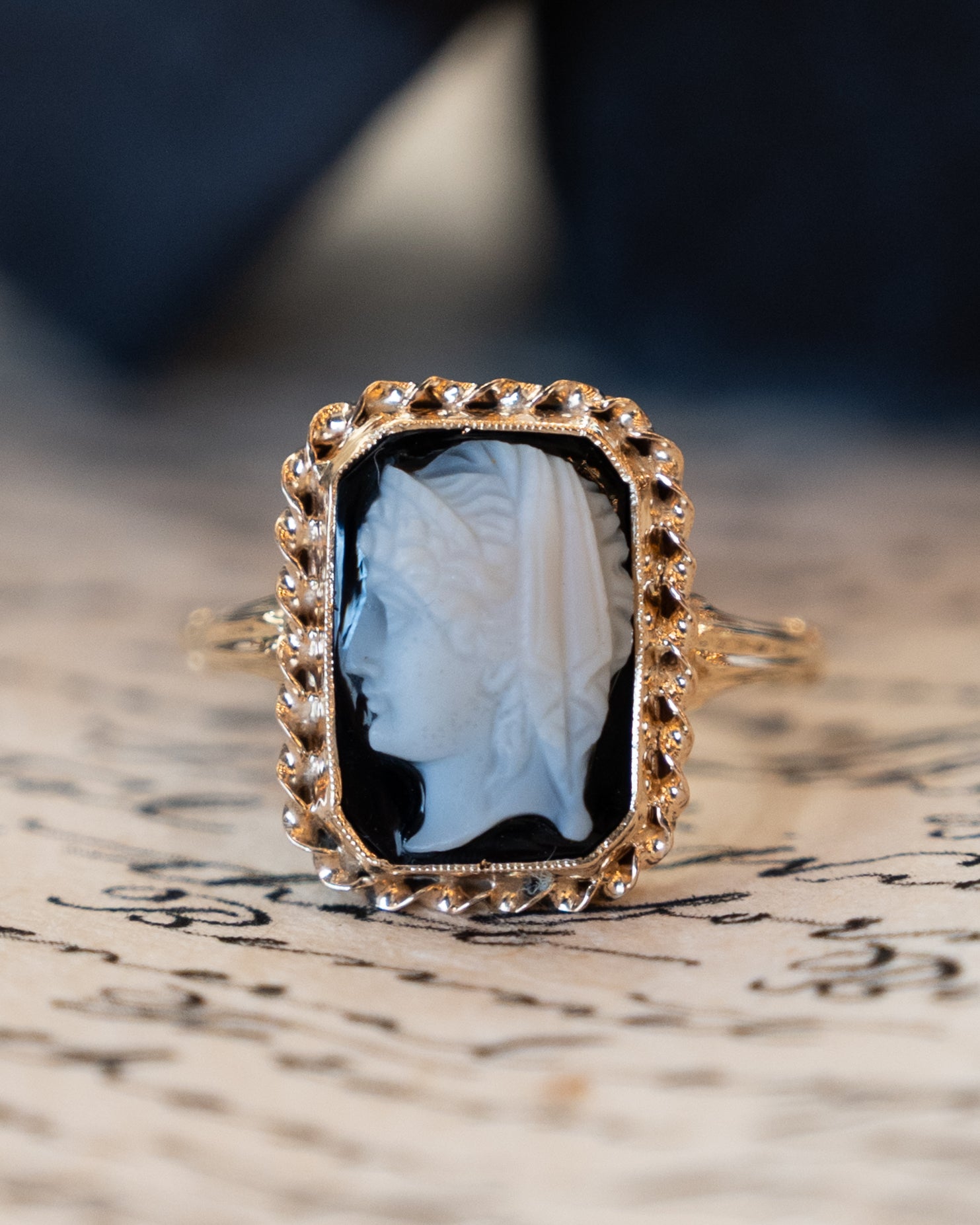 Vintage Mid-Century Sardonyx Cameo Cocktail Ring 14k