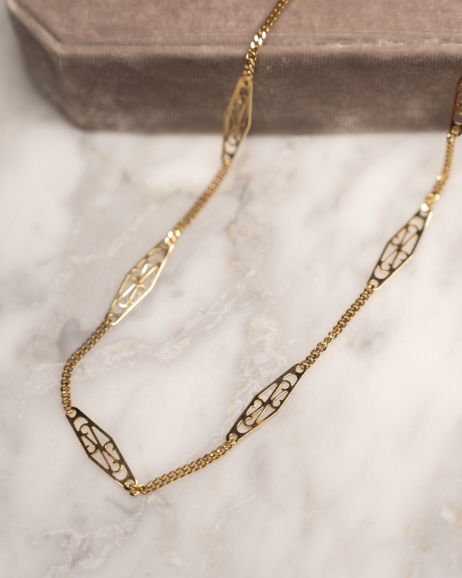 Vintage Mid-Century Triangular Link Necklace in 14k