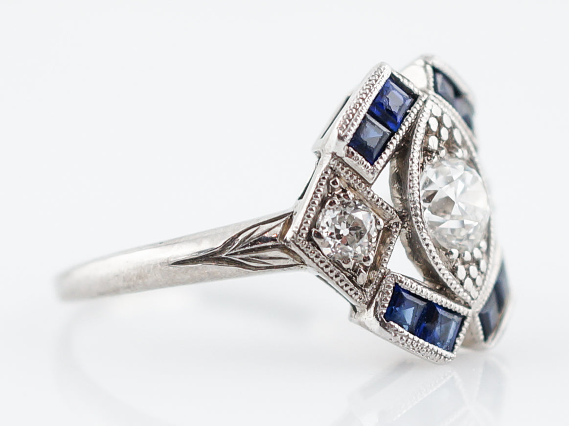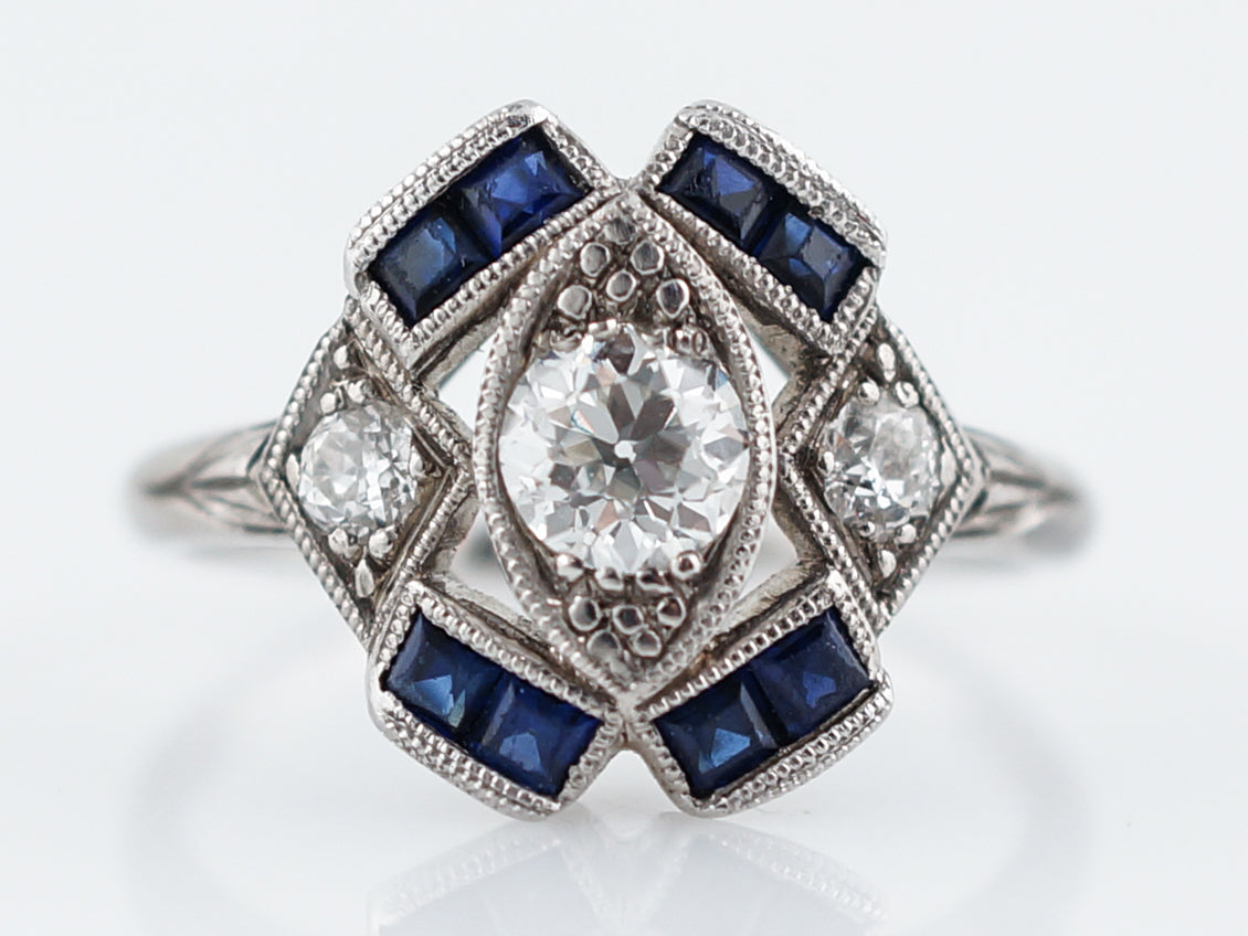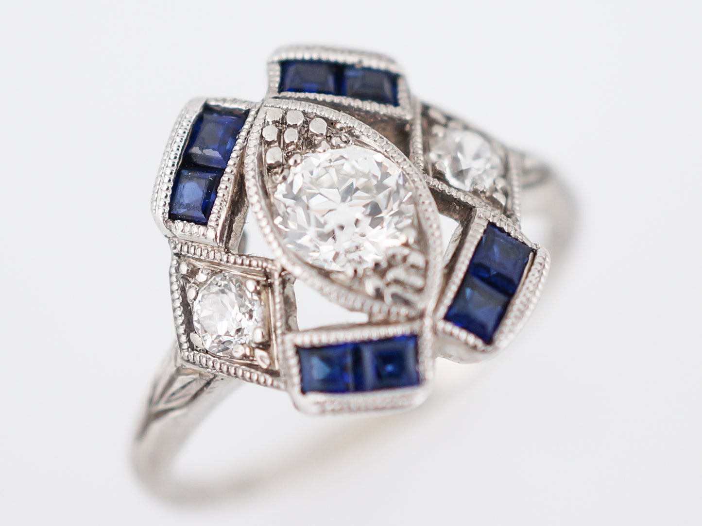 Vintage Platinum Art Deco Diamond & Sapphire Ring