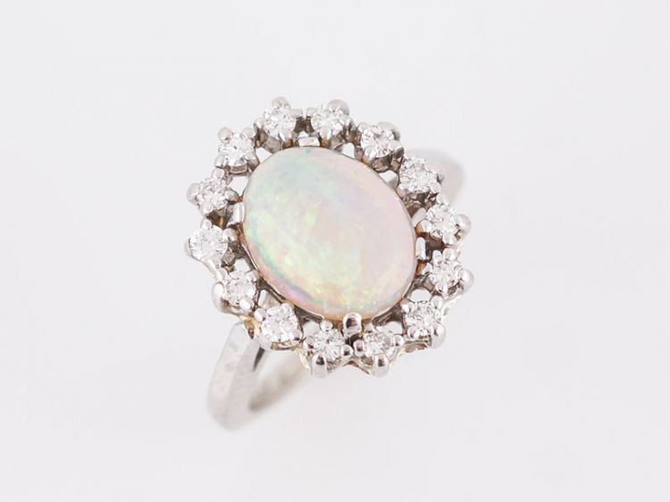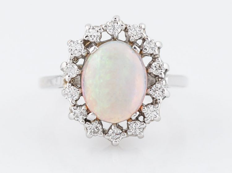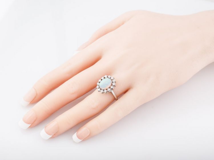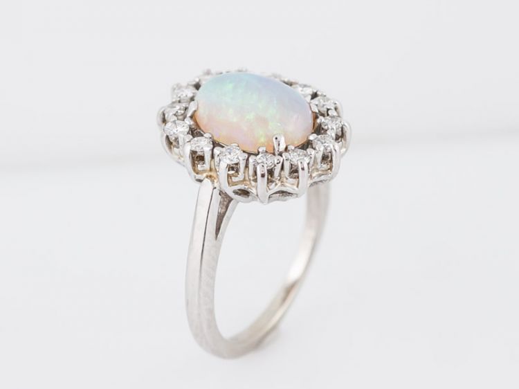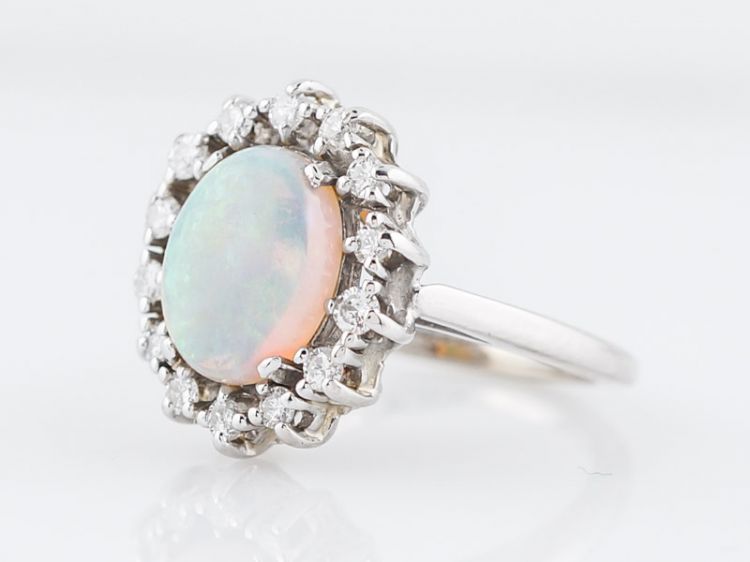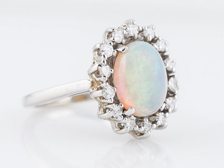 Vintage Right Hand Ring Mid-Century 1.98 Cabochon Cut Opal in 14k White Gold