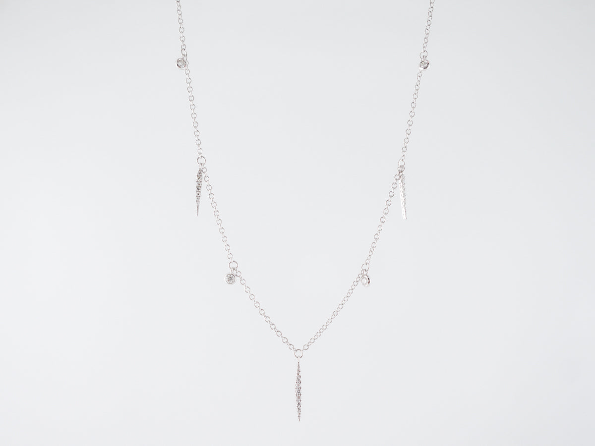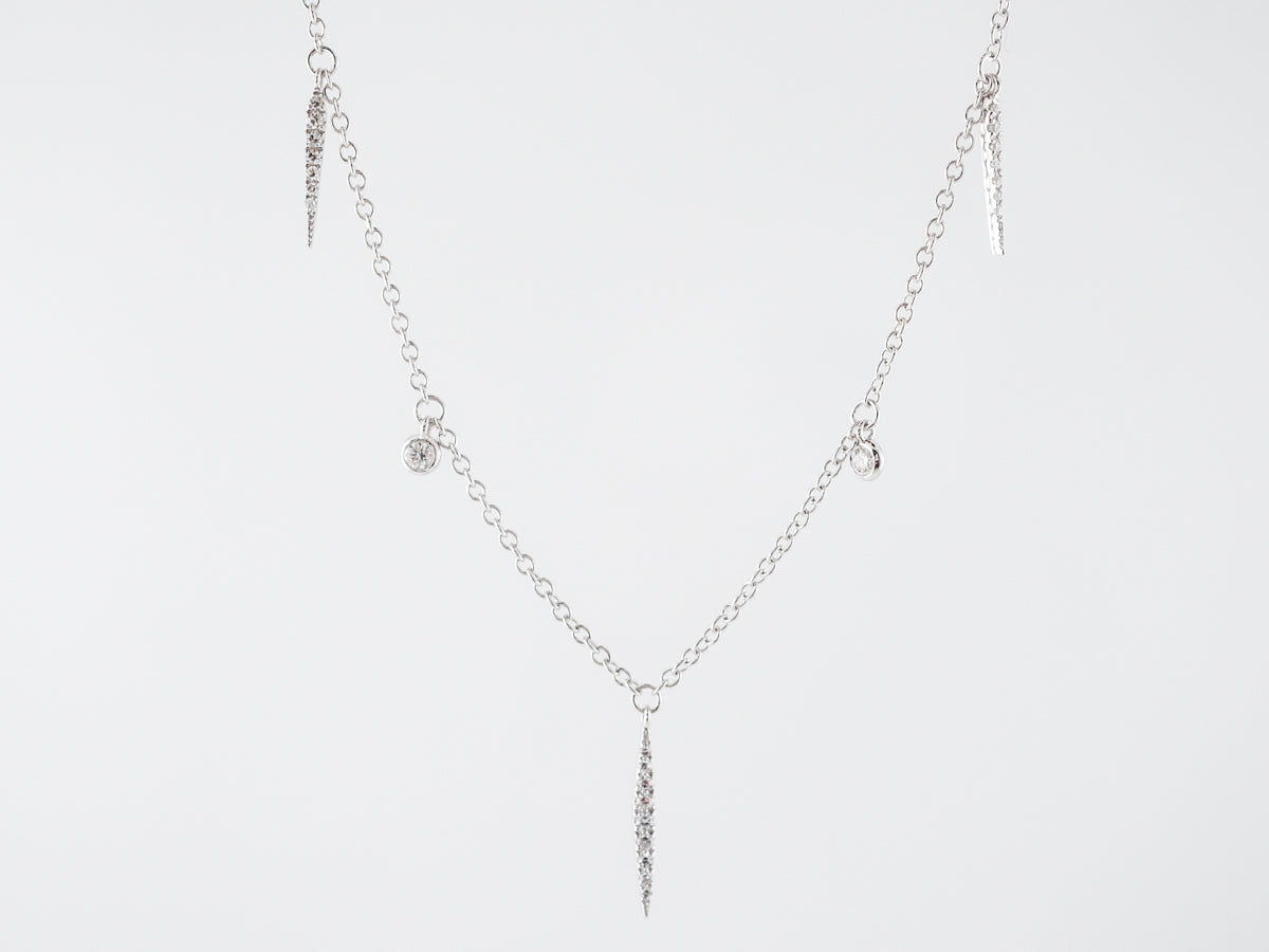 This elegant modern necklace has a very art deco feel. Each pendant dangles from the chain and is lined with diamonds, providing sparkle with every movement. Finished in 18k white gold, this versatile piece can be worn for just about any occasion!