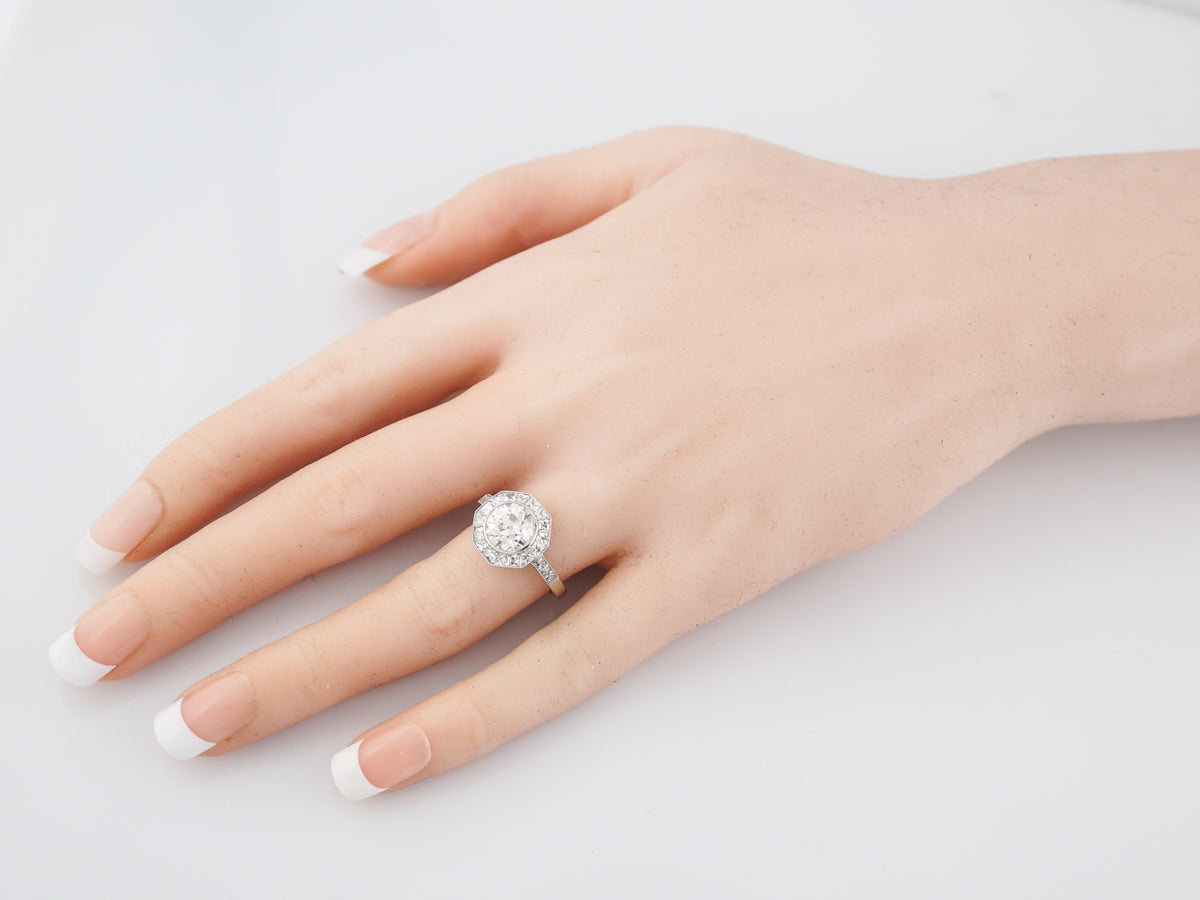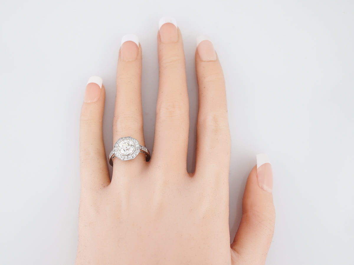 Vintage Style Diamond Halo Engagement Ring in Platinum